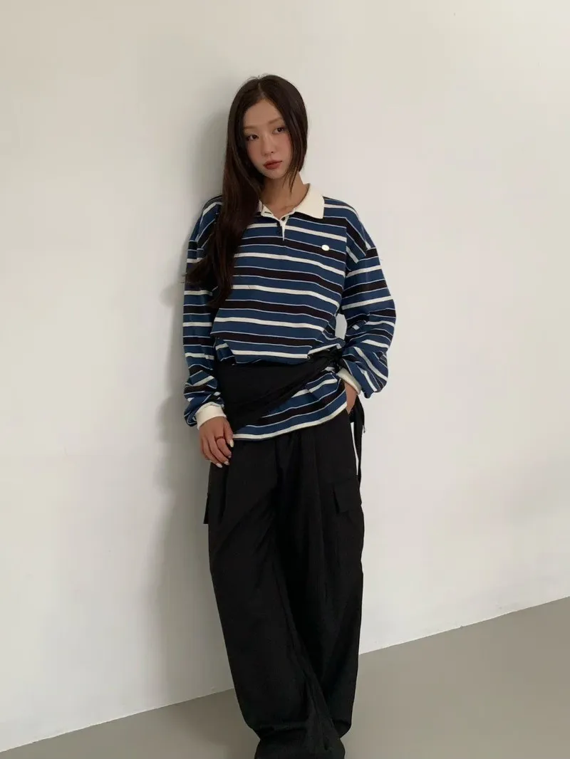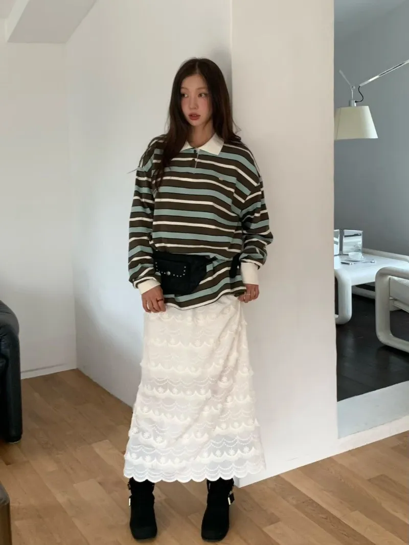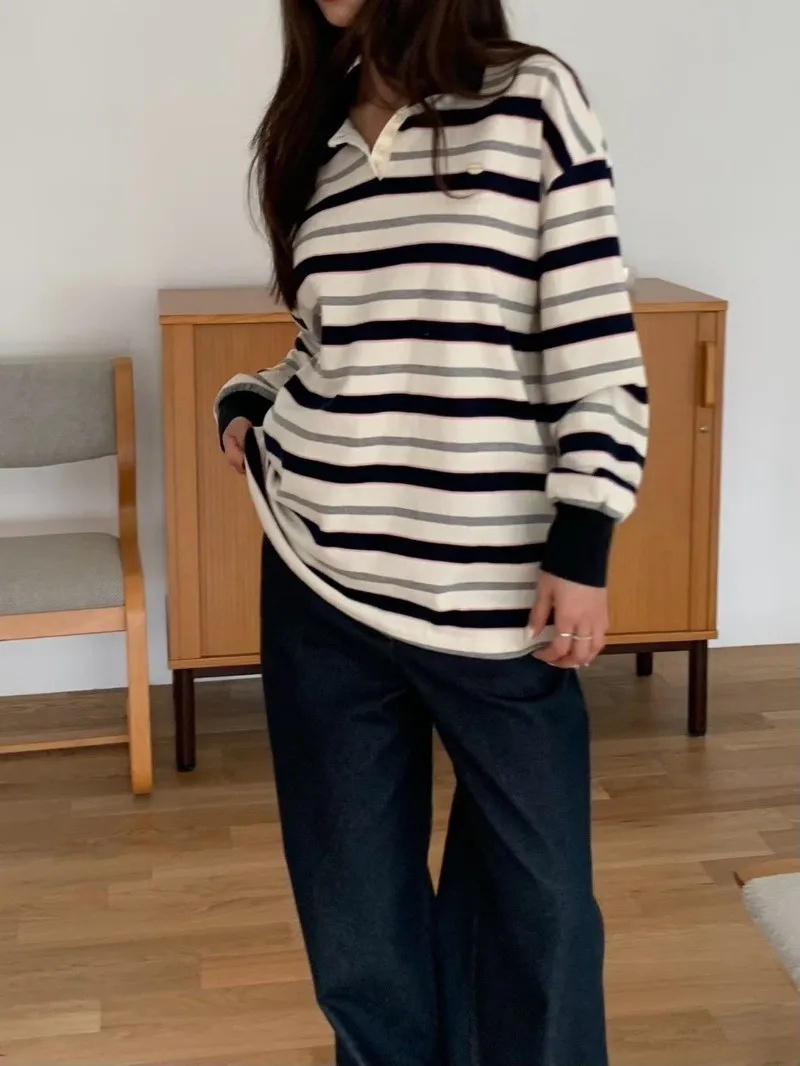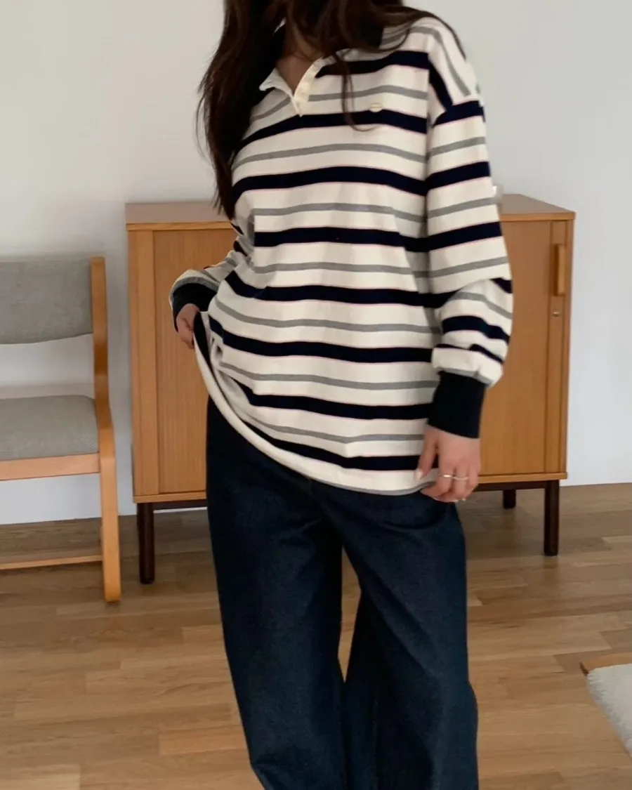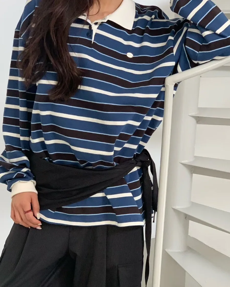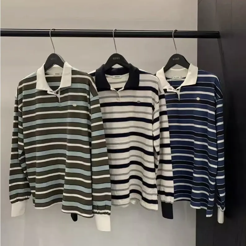 2025秋季新品糖果色條紋翻領半扣中長襯衫