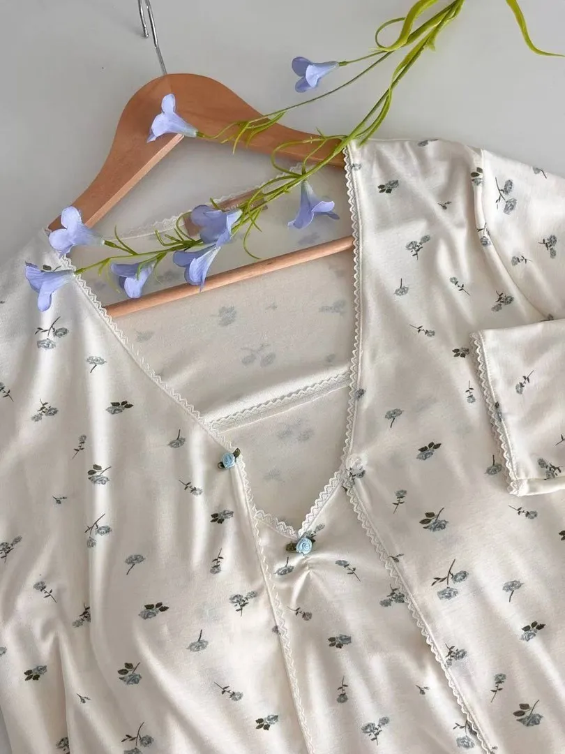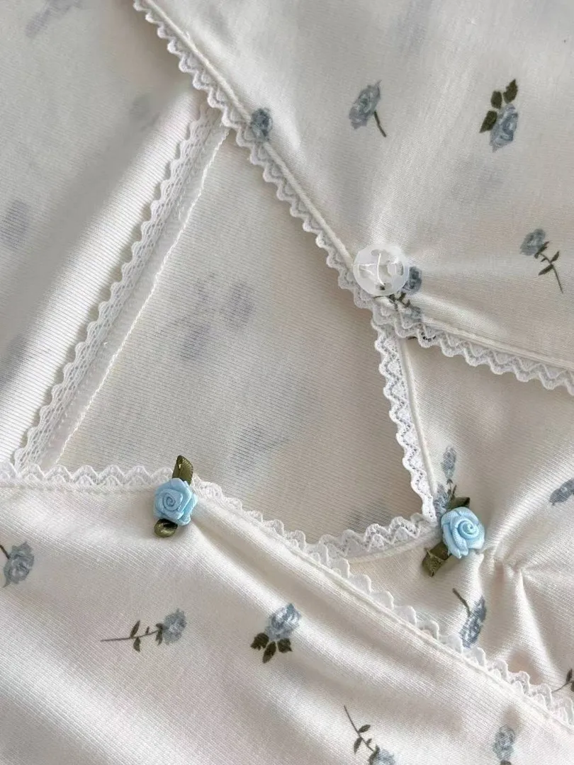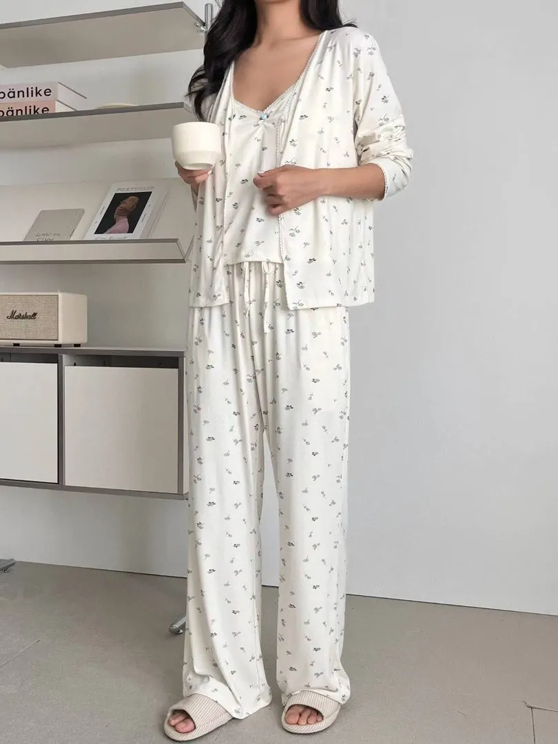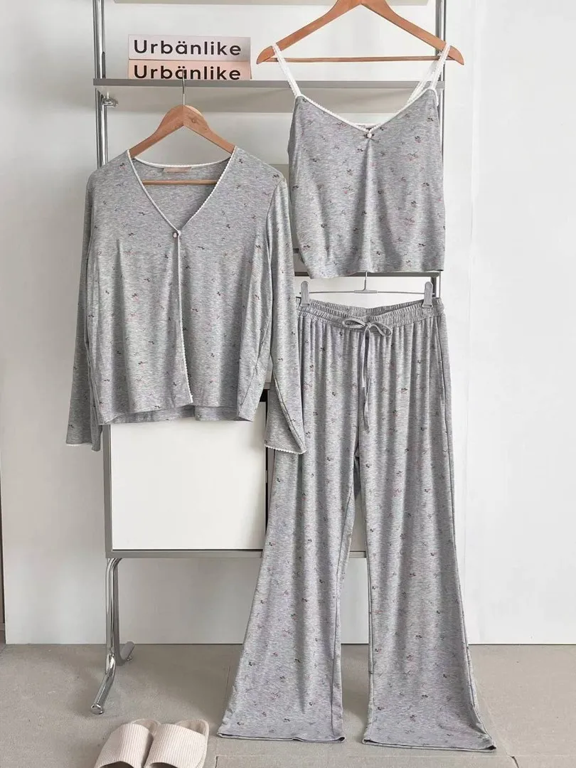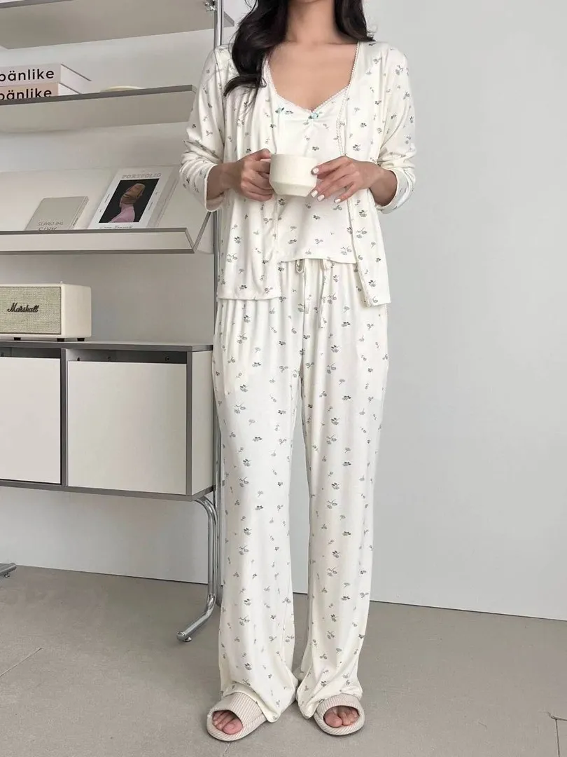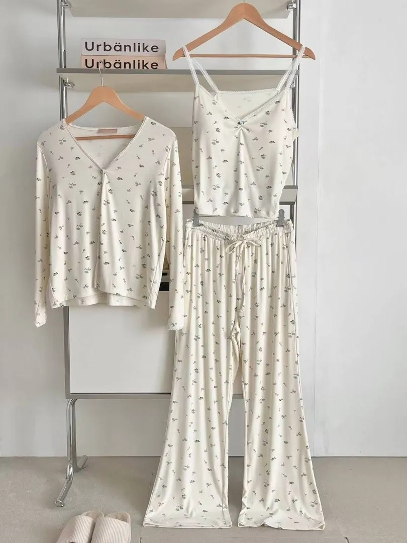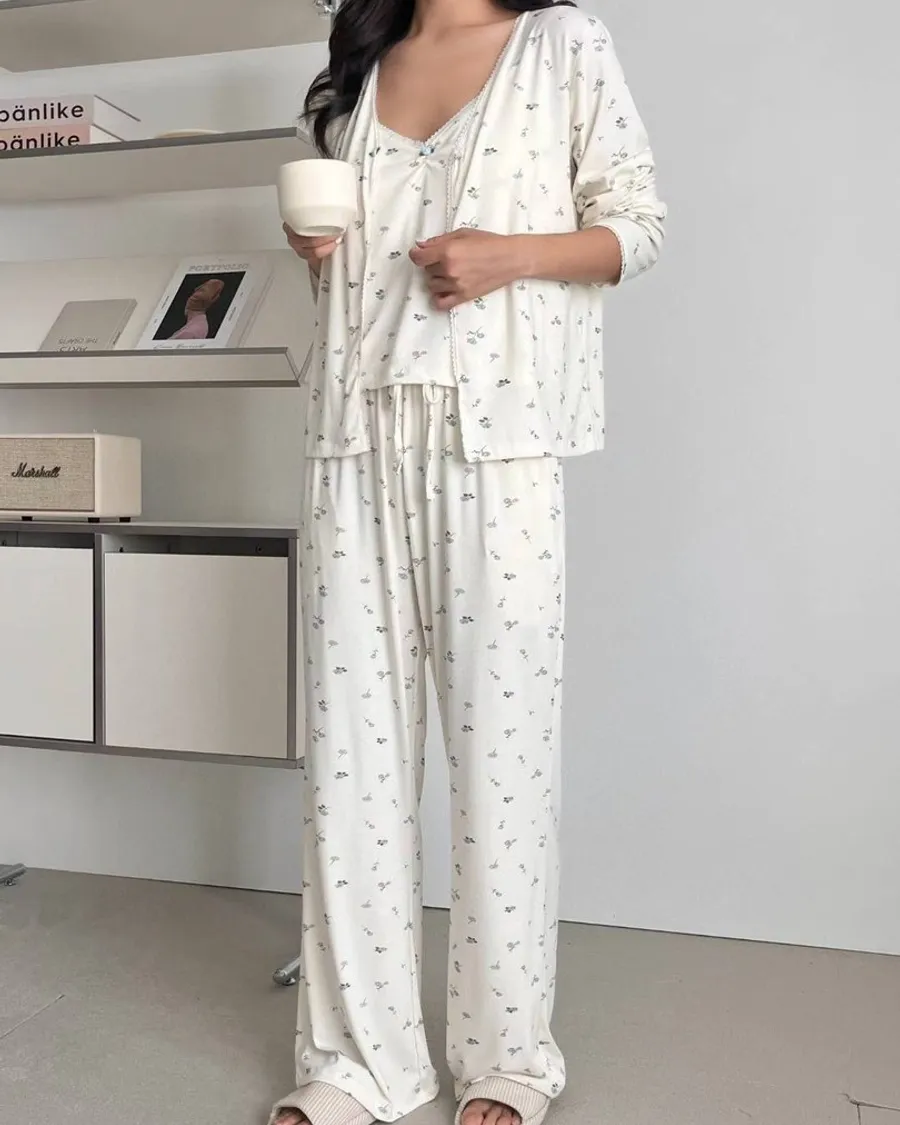 秋冬款舒適玫瑰碎花三件式長袖睡衣
