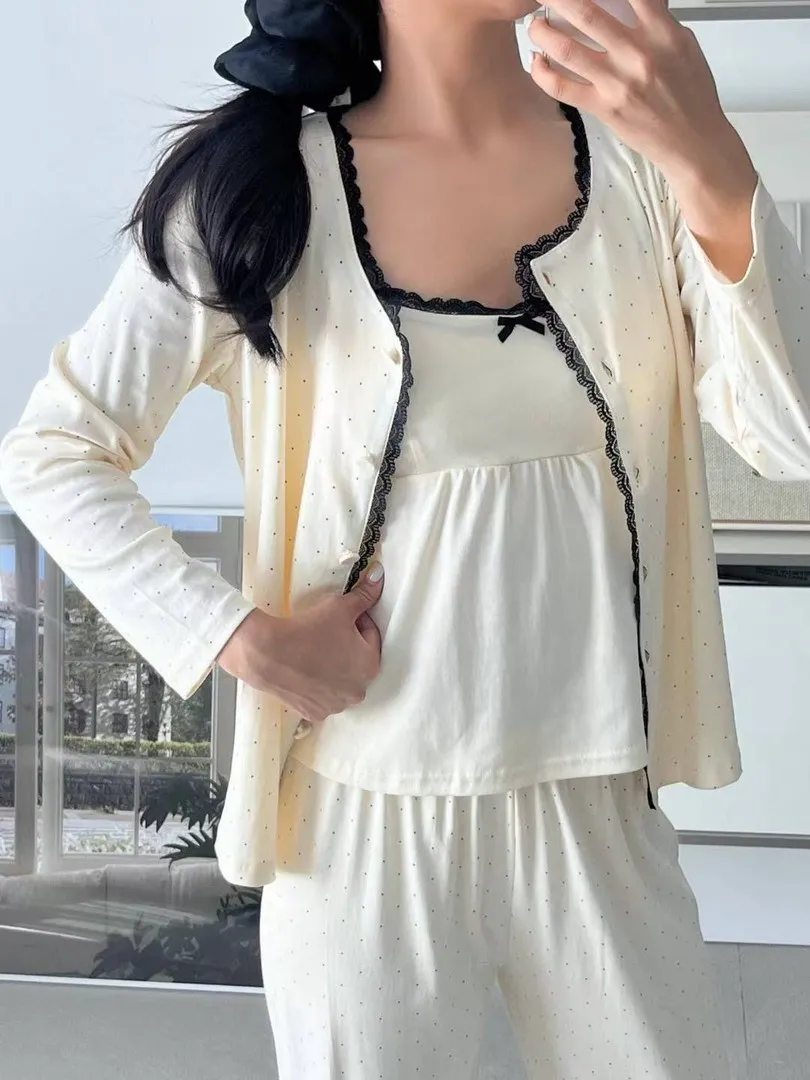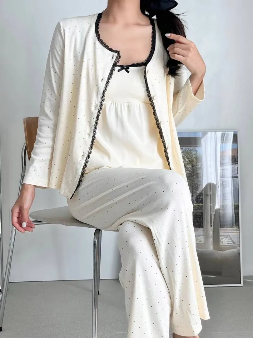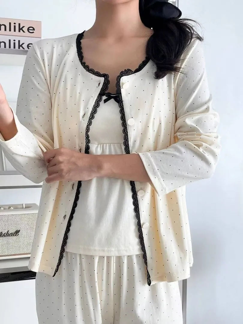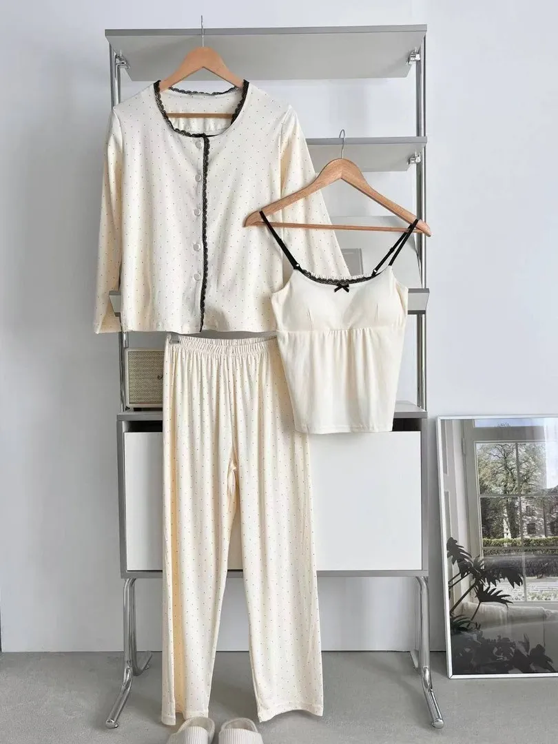 秋冬莫代爾棉質吊帶三件式長袖睡衣