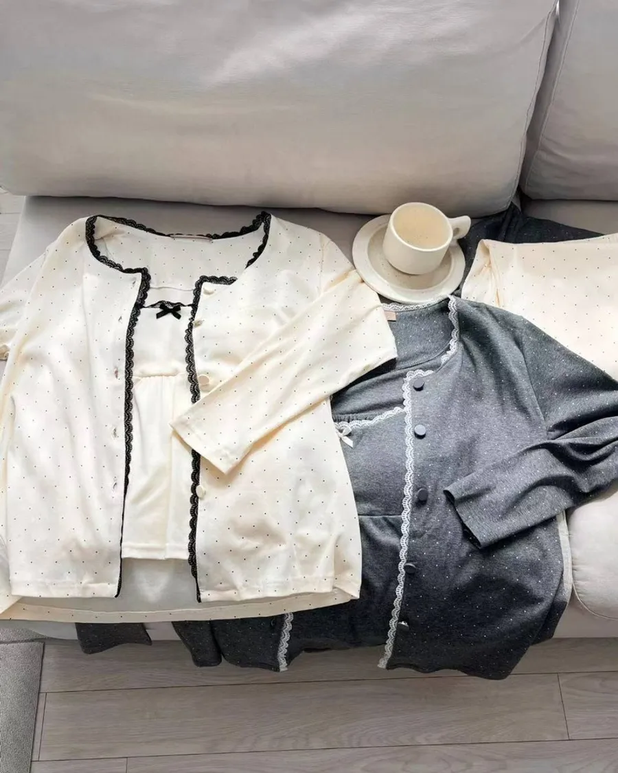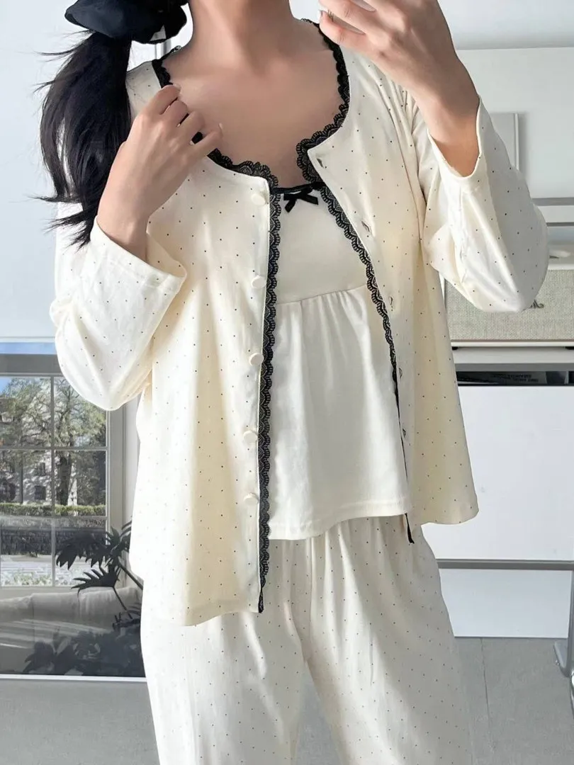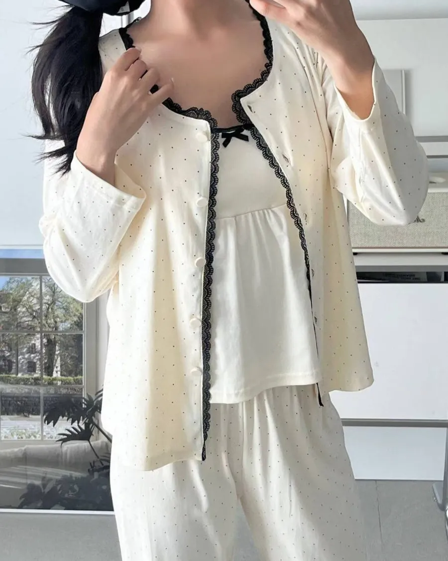 秋冬莫代爾棉質吊帶三件式長袖睡衣