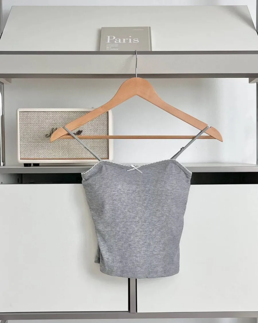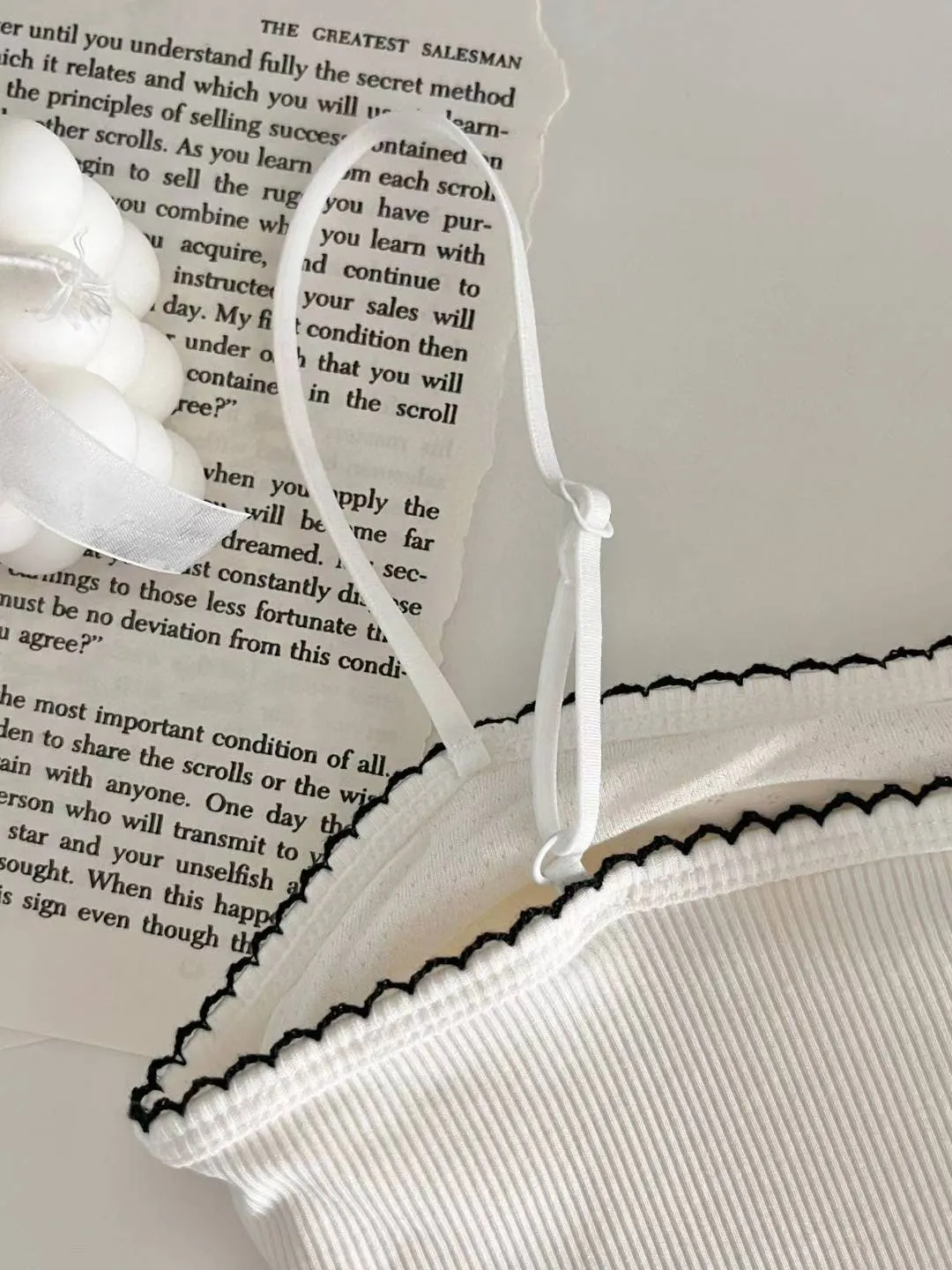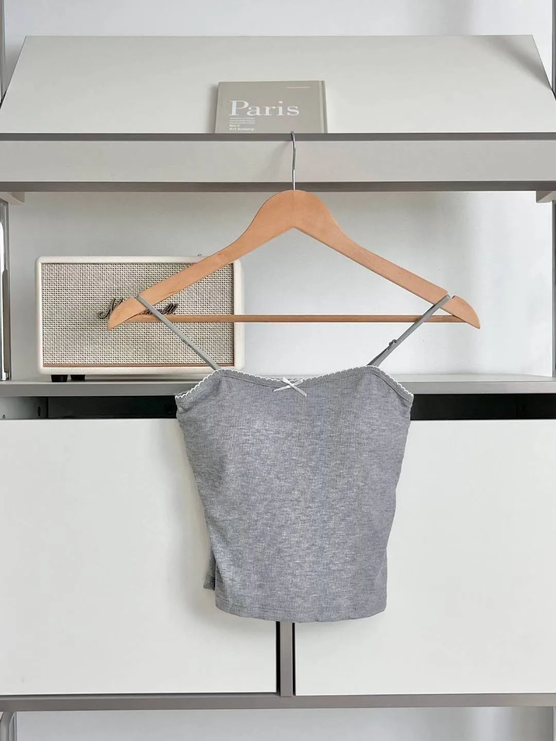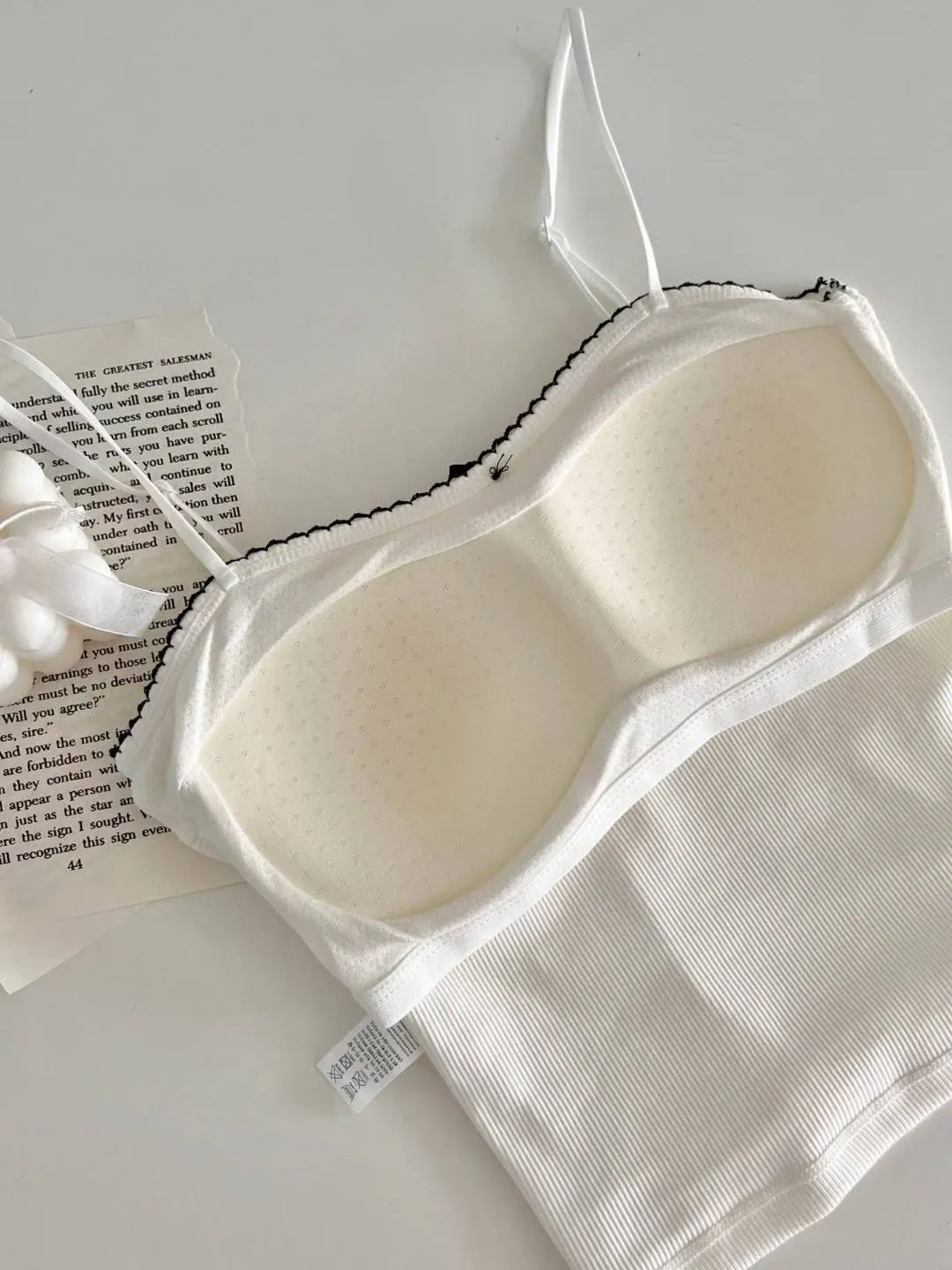純棉撞色波紋小蝴蝶結拼接細肩帶可外穿短款小背心