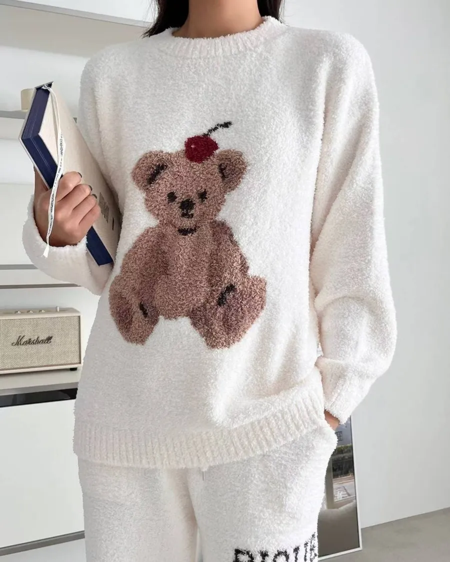 冬季珊瑚絨長袖睡衣套裝