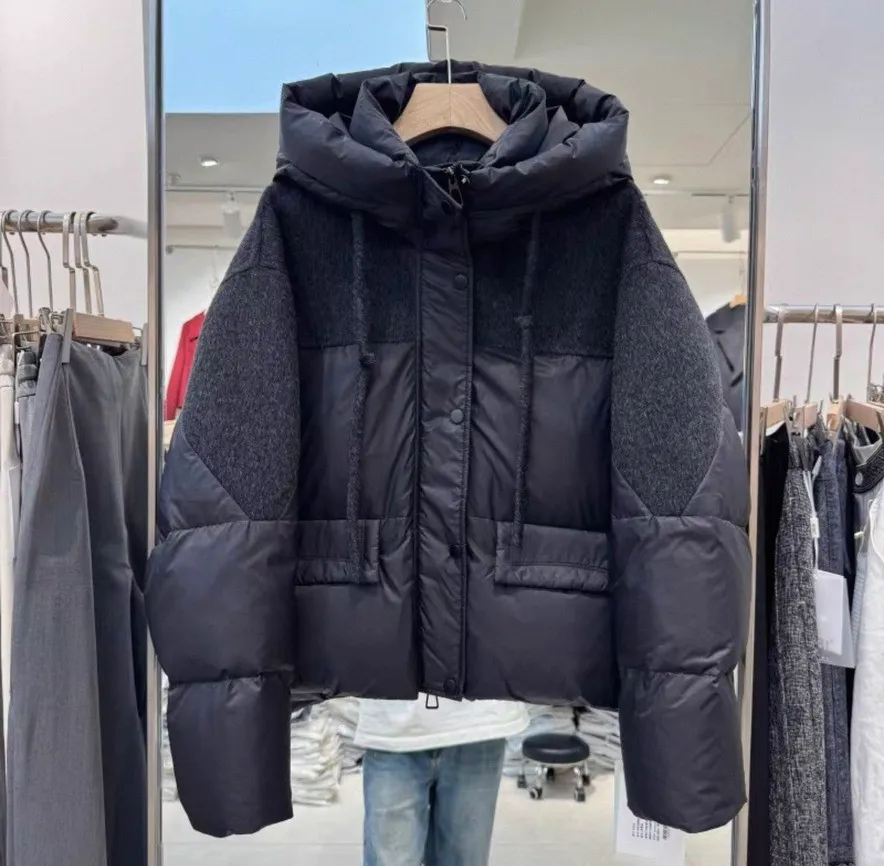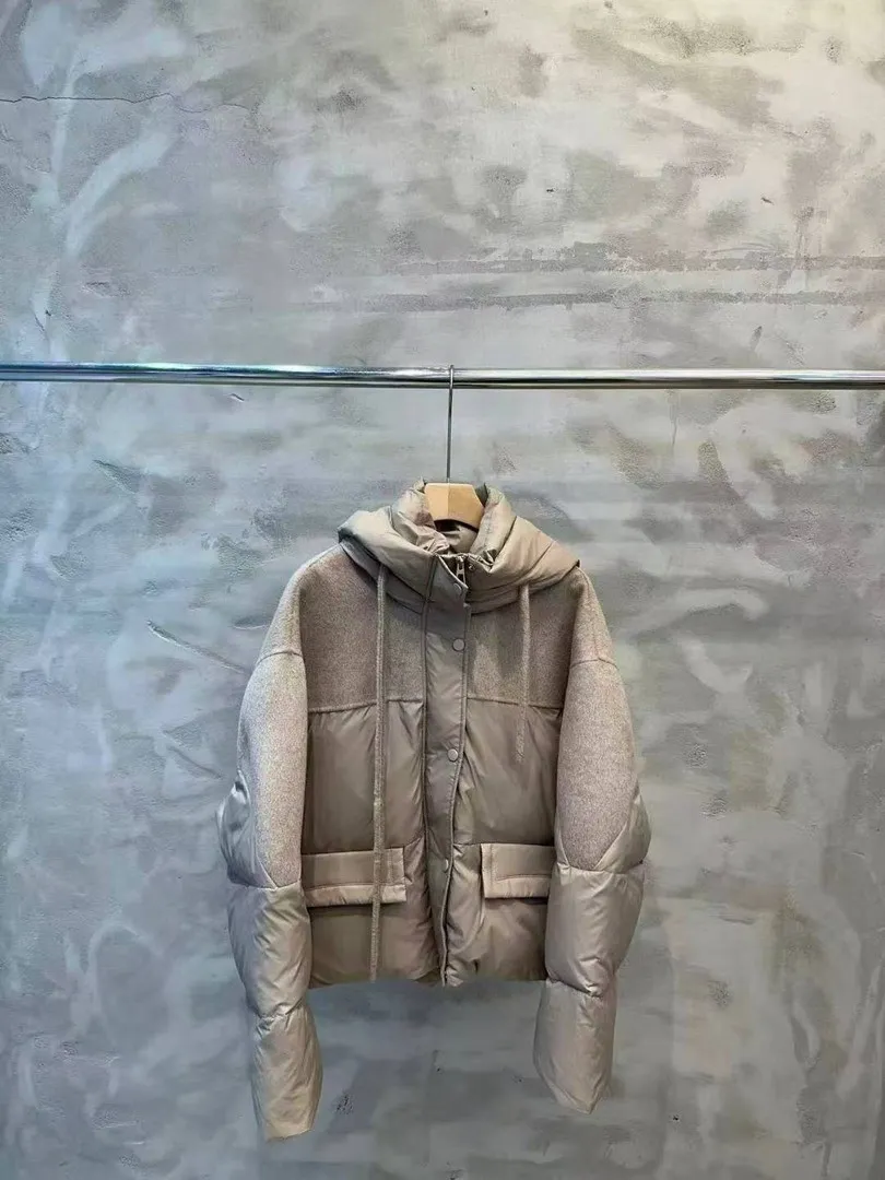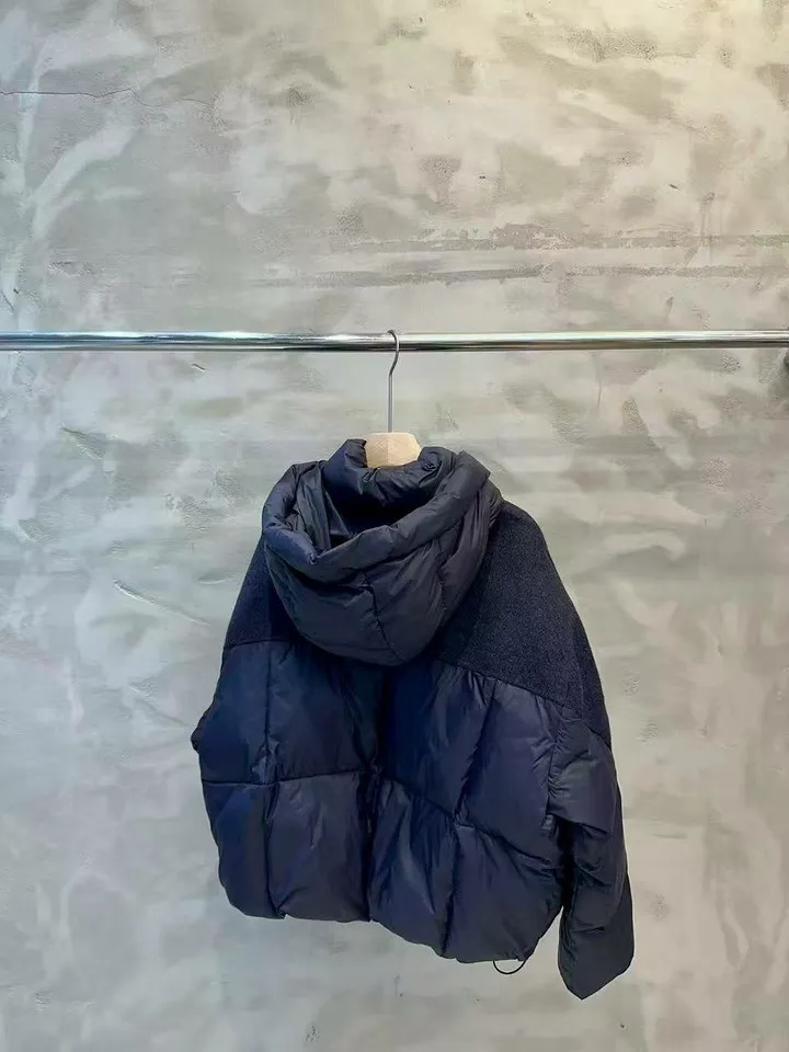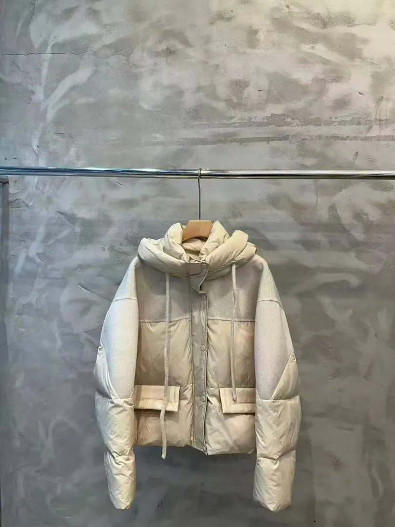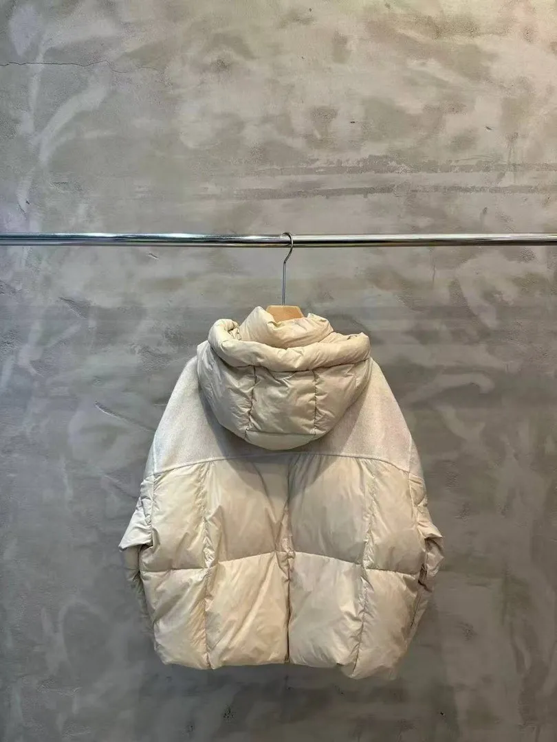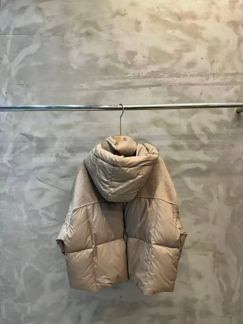 秋冬新款羊絨羊毛拼接 鵝絨100%連帽外套 羽絨外套