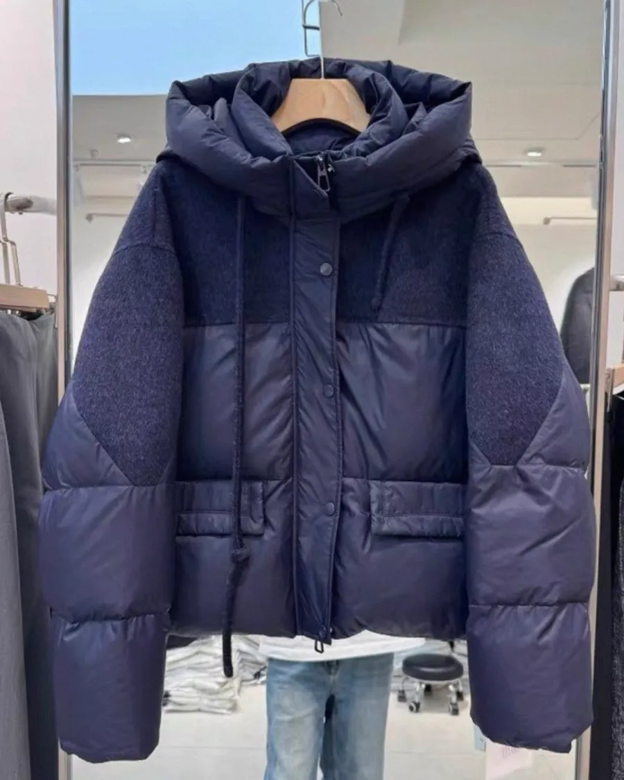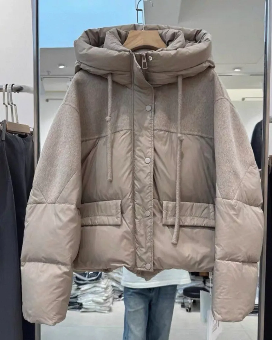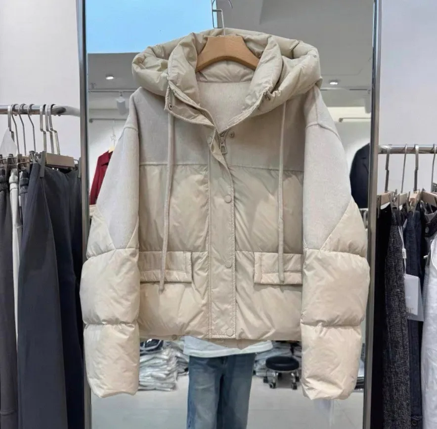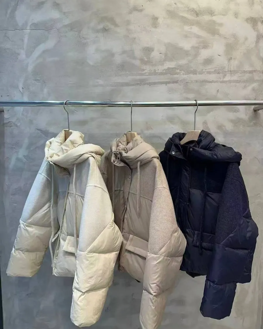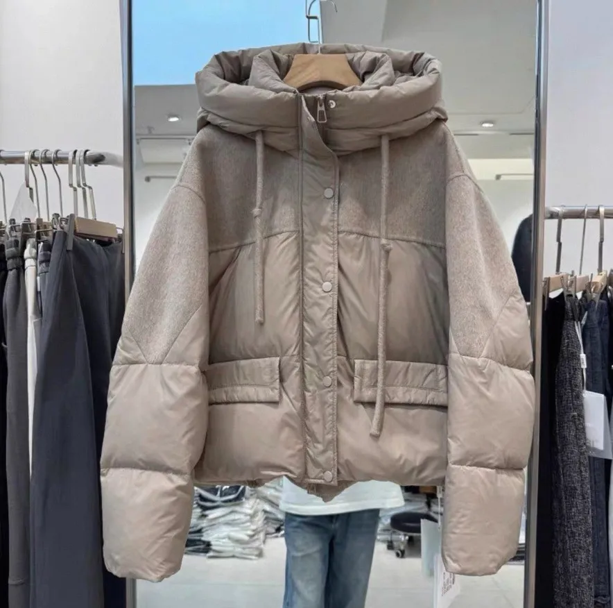 秋冬新款羊絨羊毛拼接 鵝絨100%連帽外套 羽絨外套