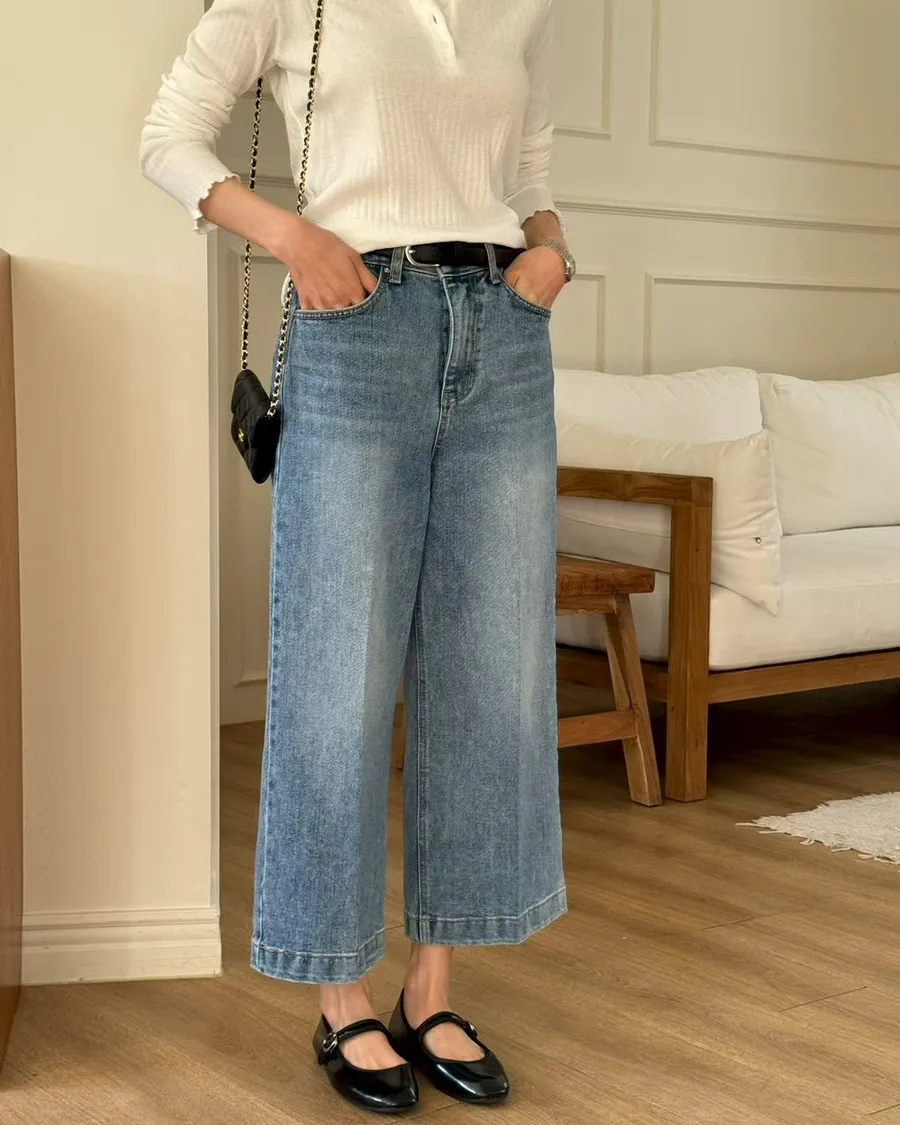 直筒九分牛仔褲