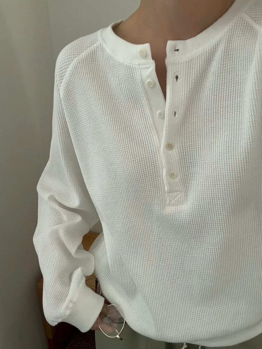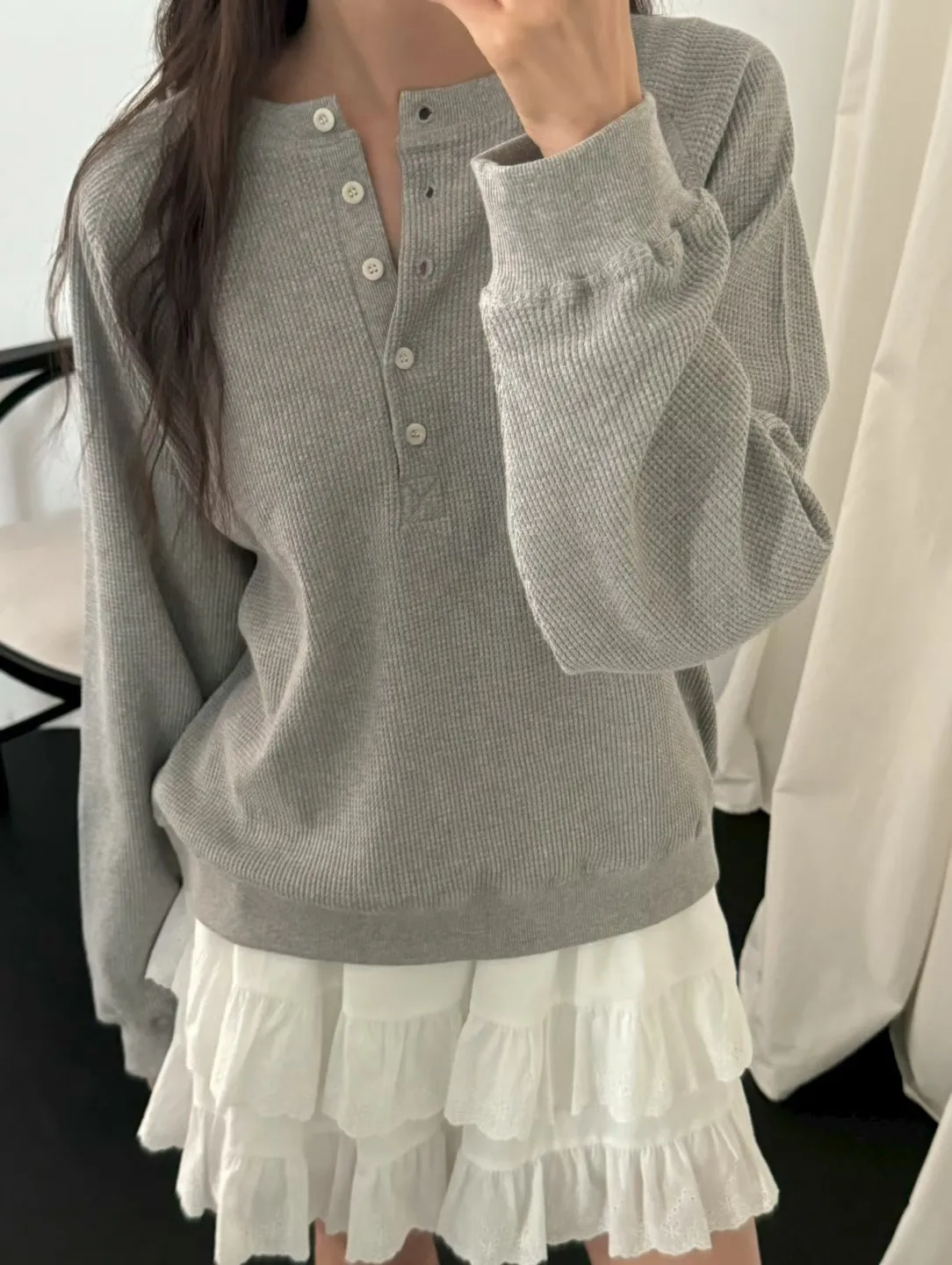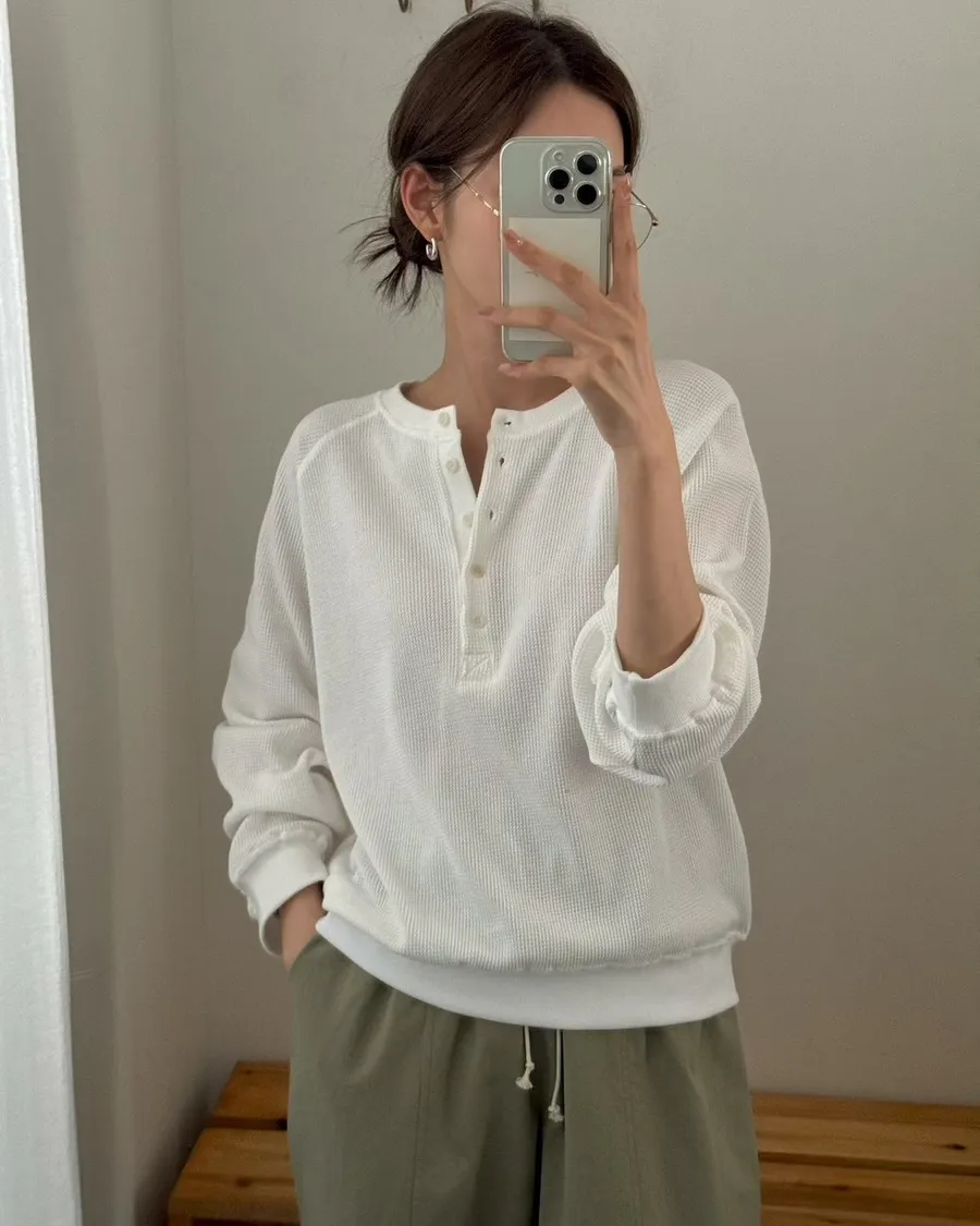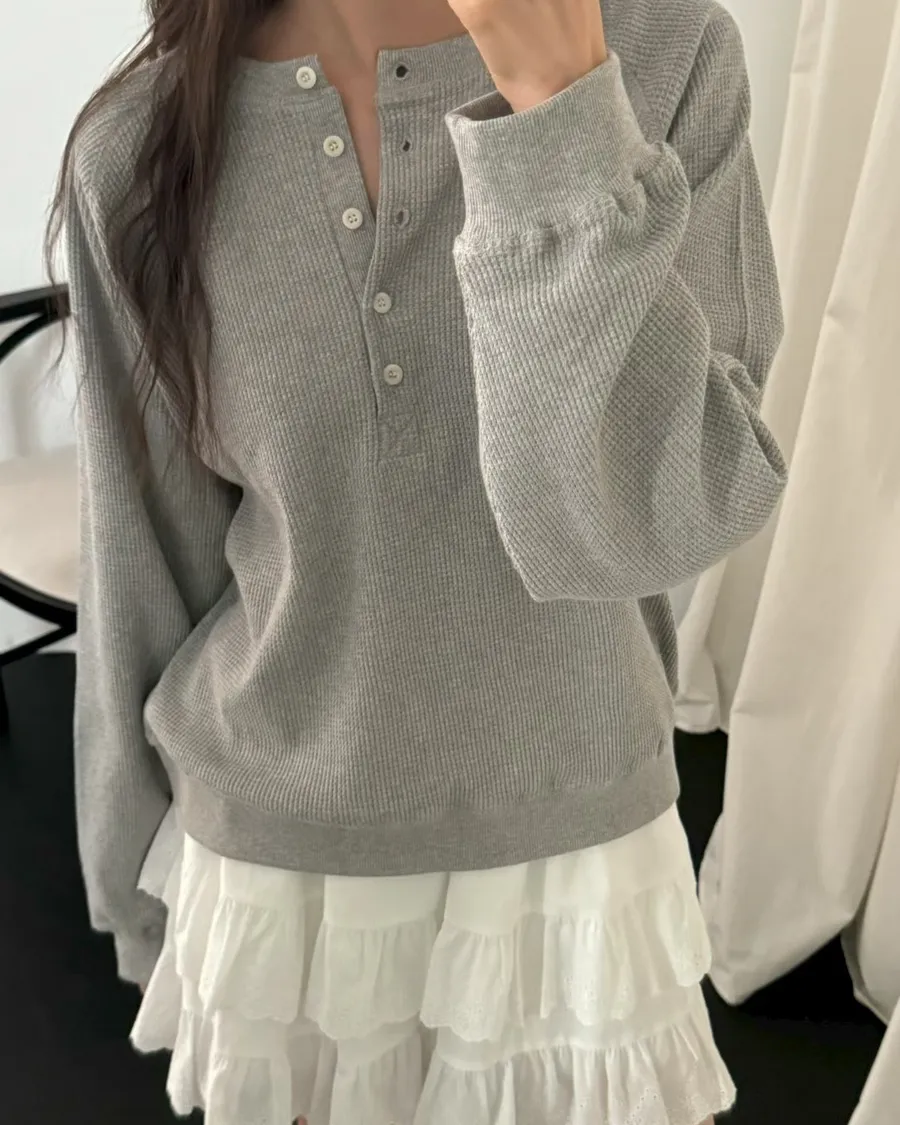 春季半系扣小華夫格圓領衛衣