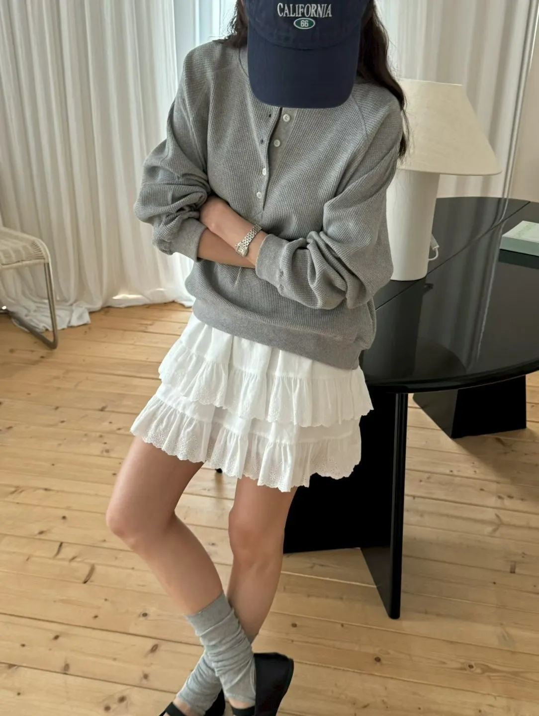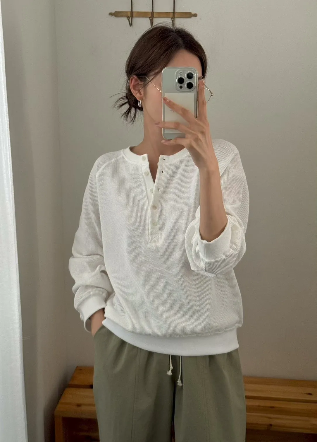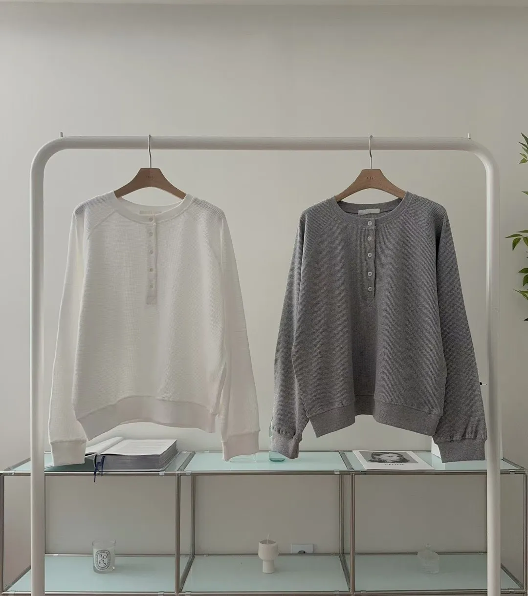 春季半系扣小華夫格圓領衛衣