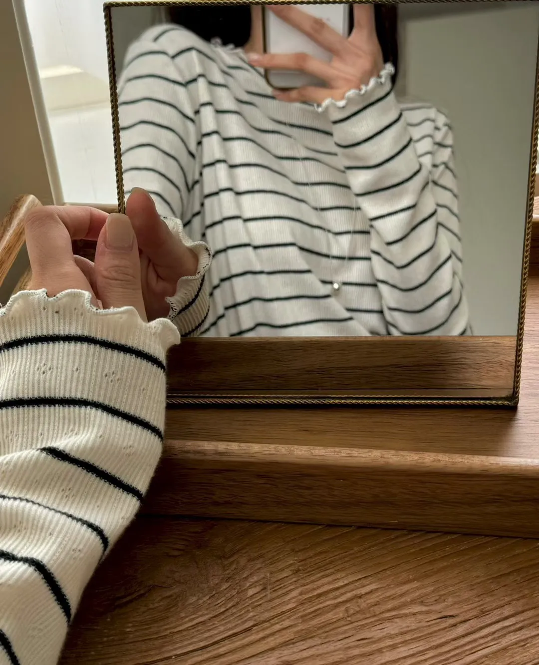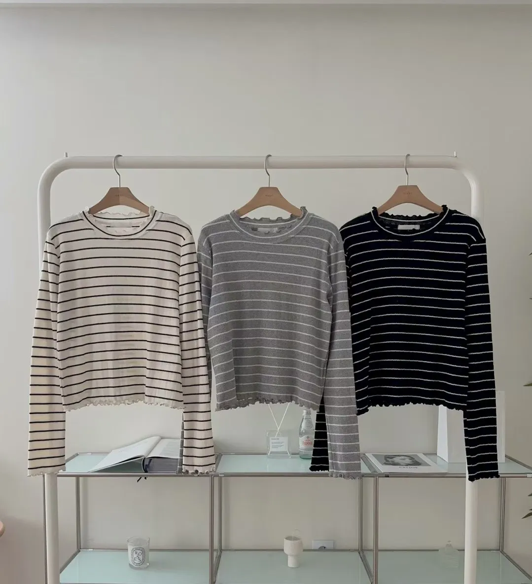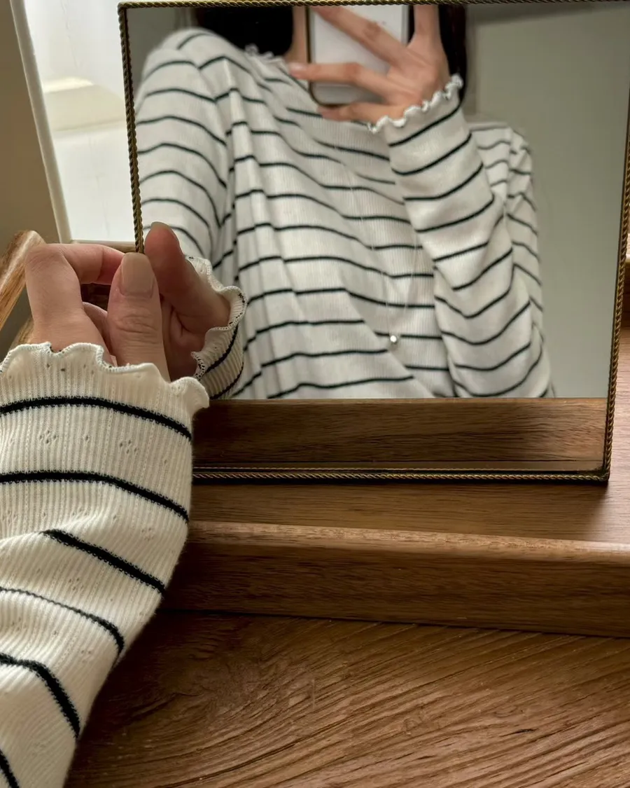 春季小卷邊條紋修身百搭長袖T恤