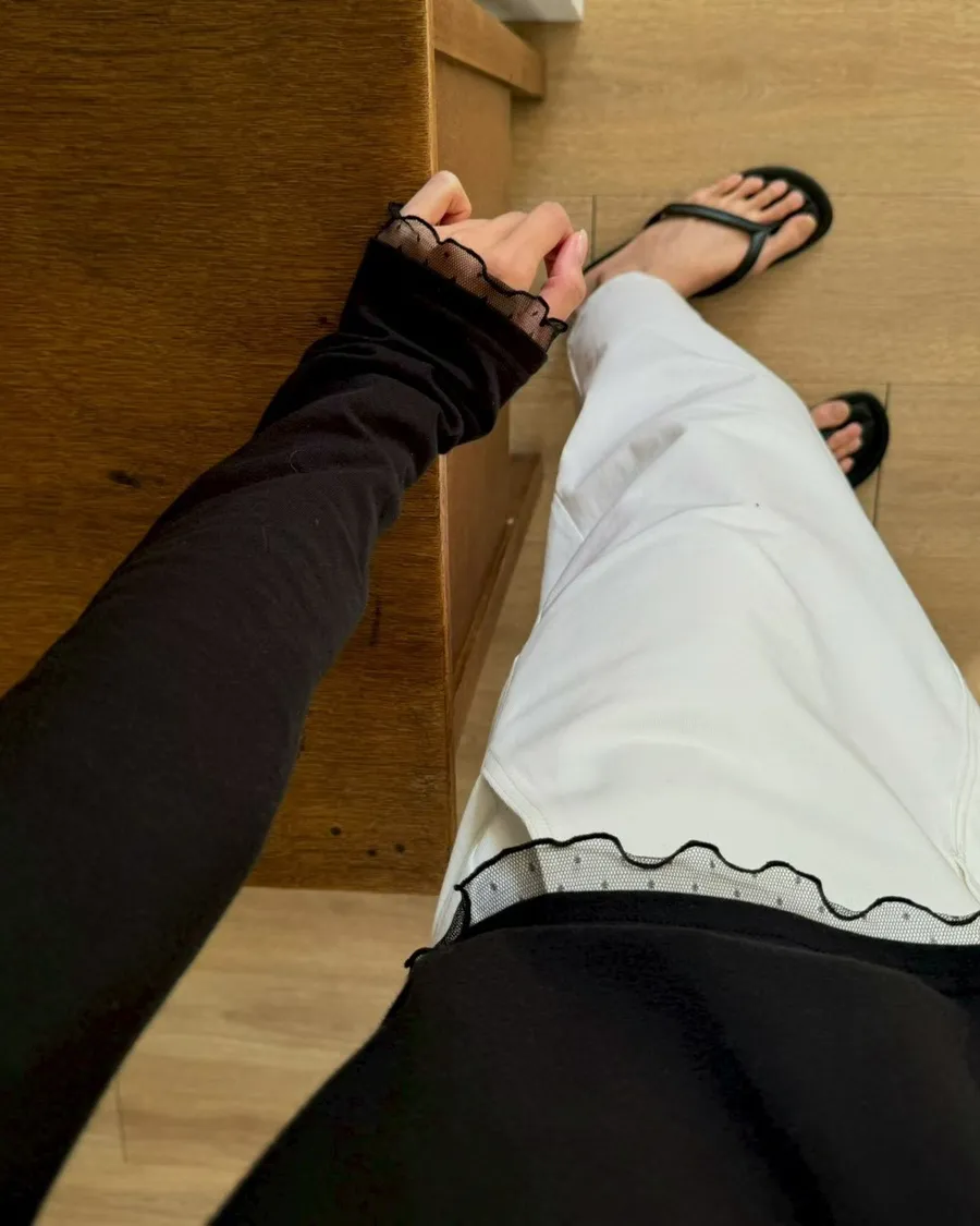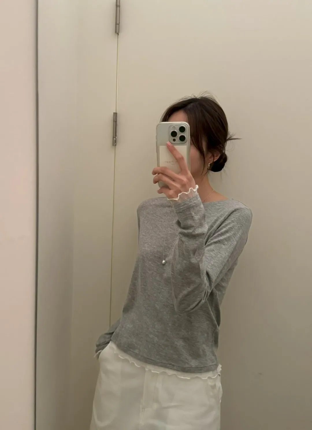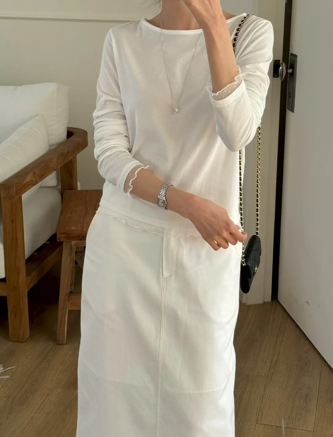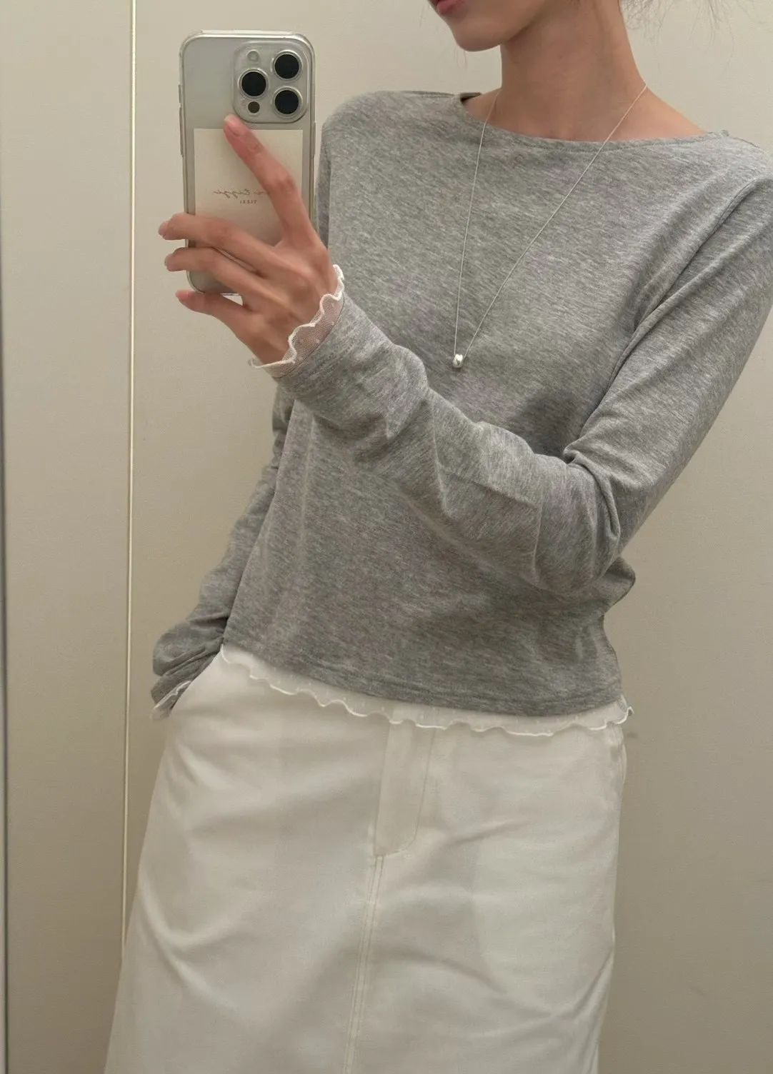 春季純色蕾絲邊裝飾舒適打底T恤