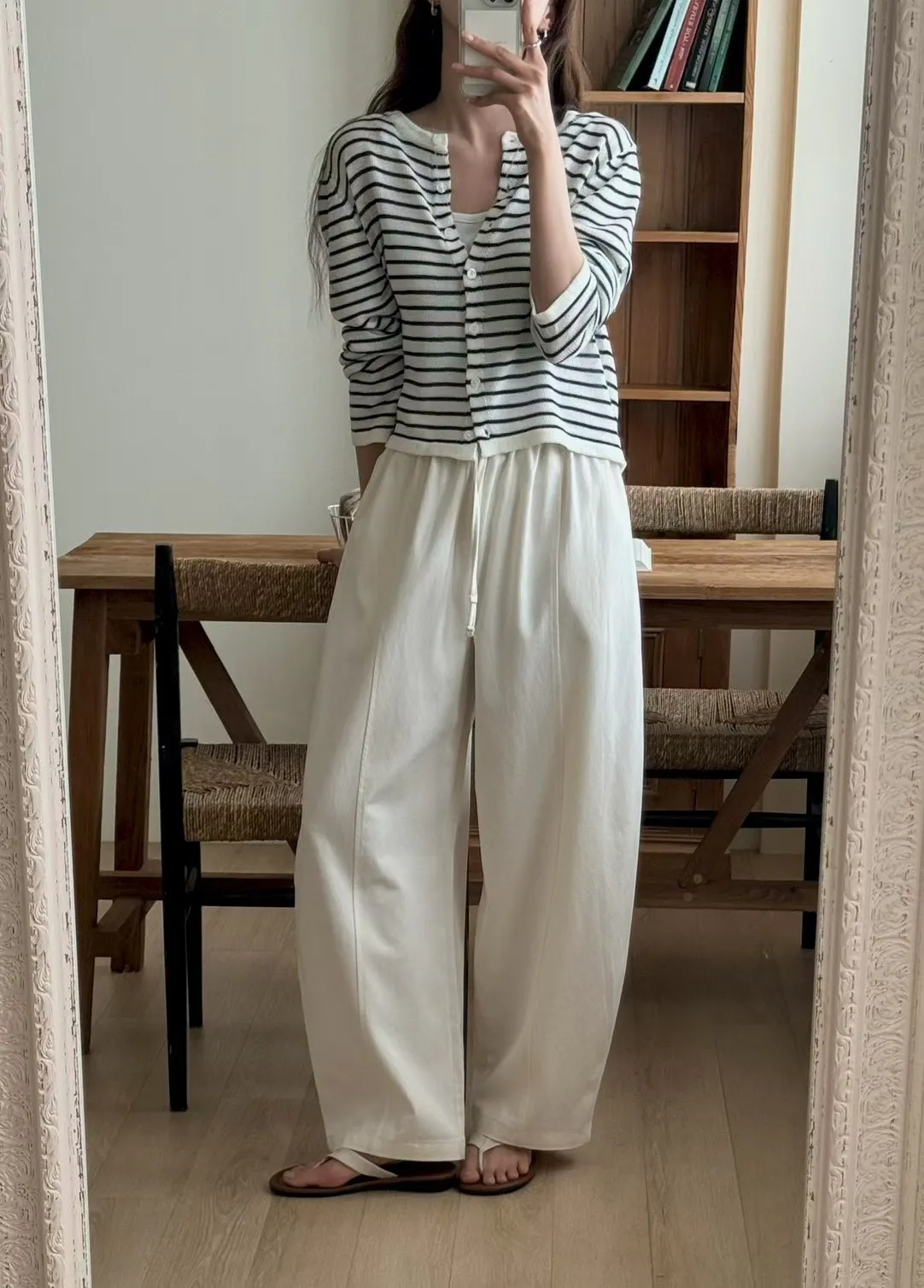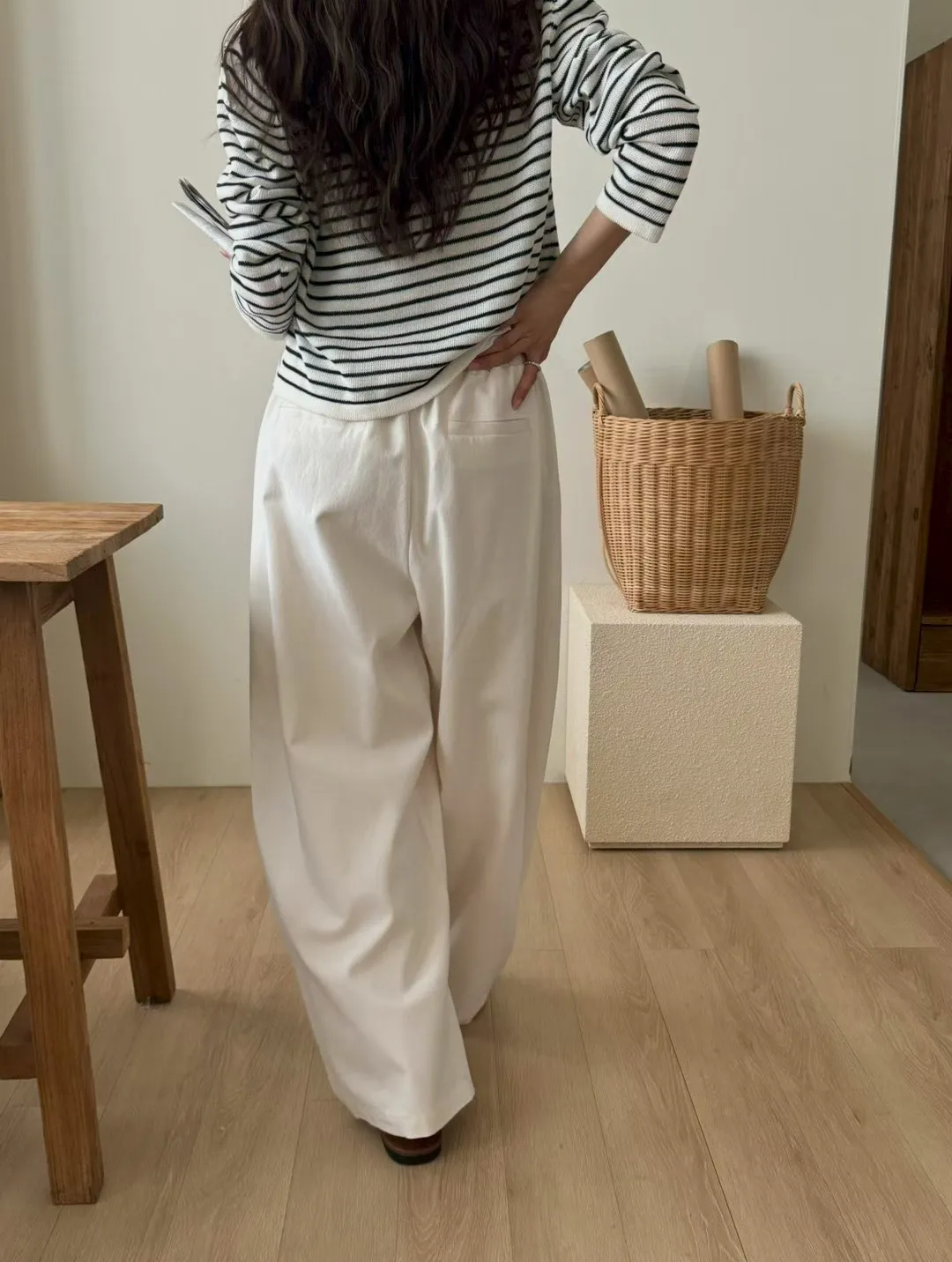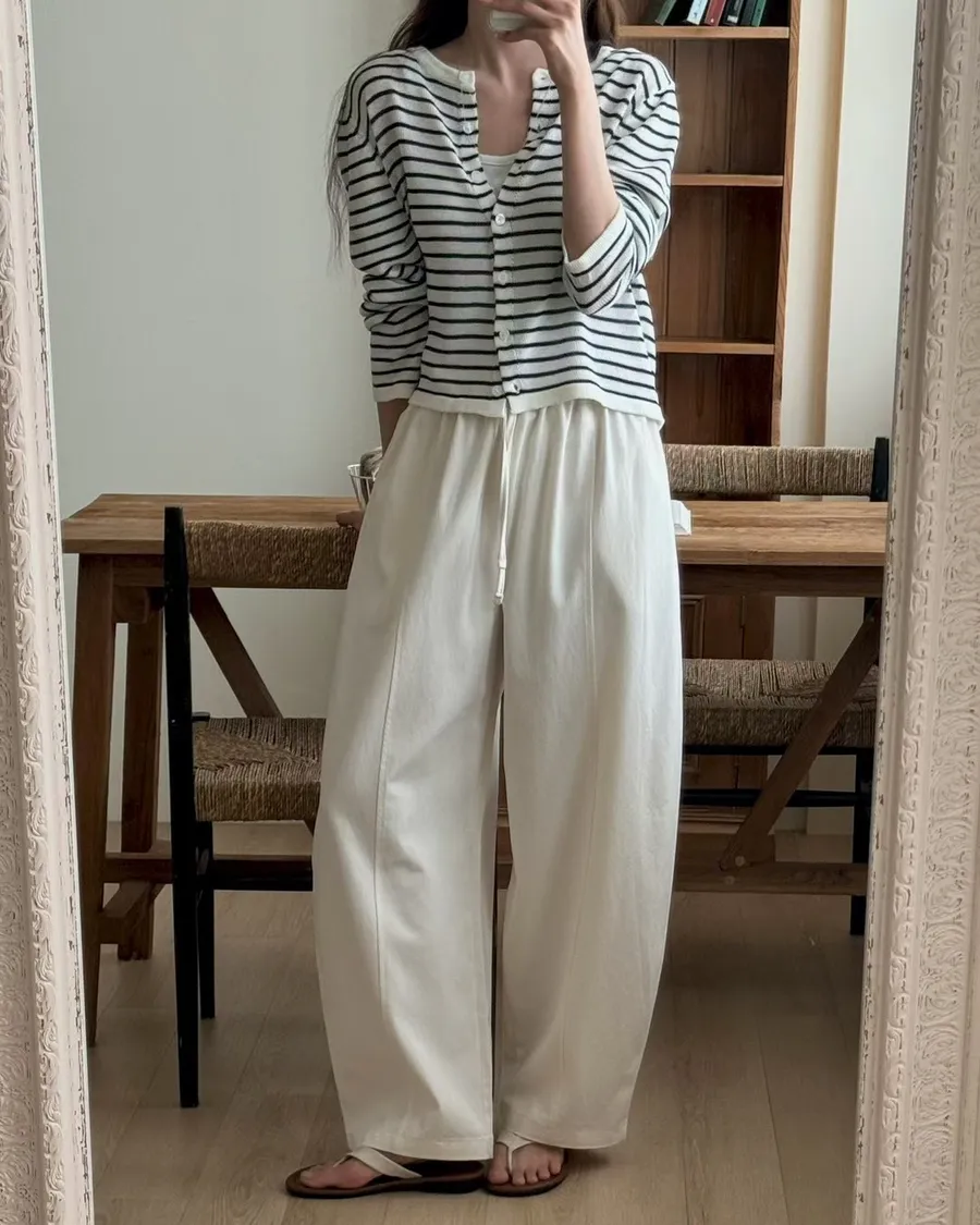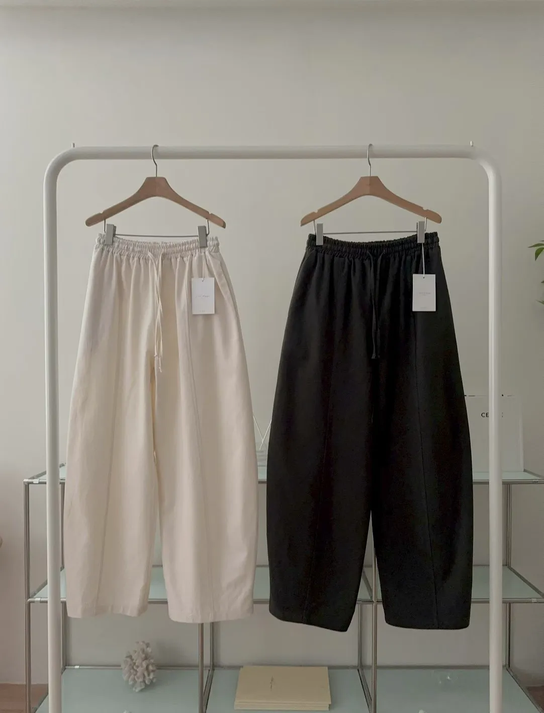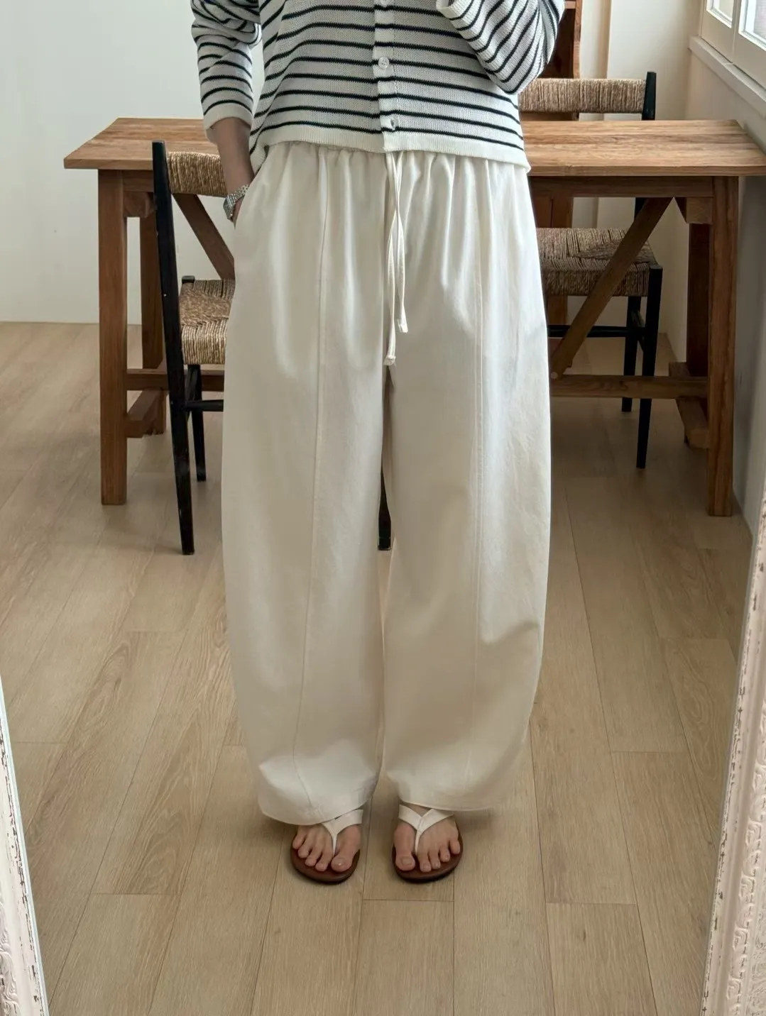 純色抽繩收腰寬鬆休閒褲