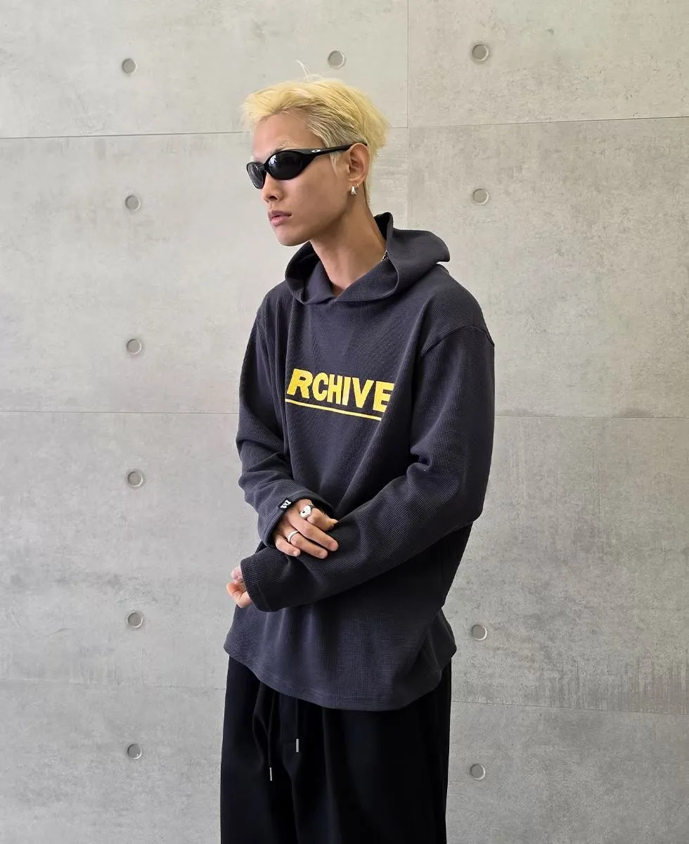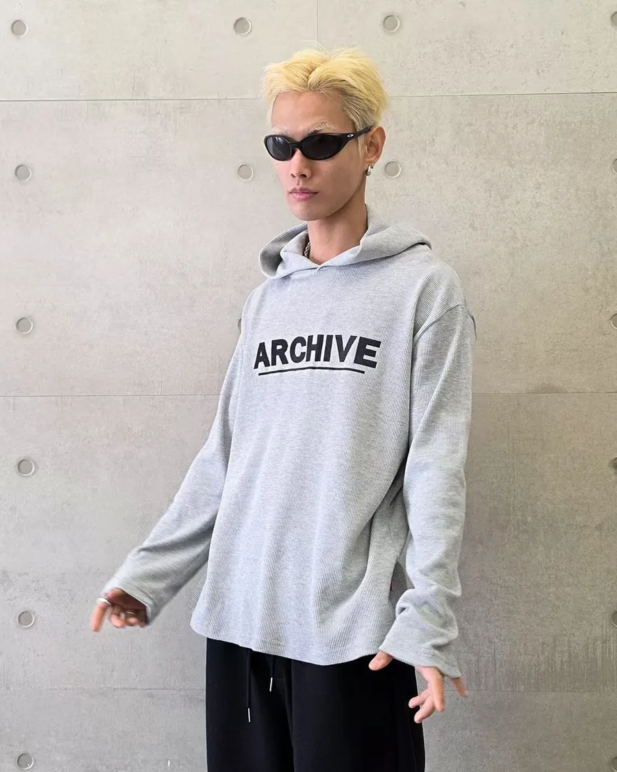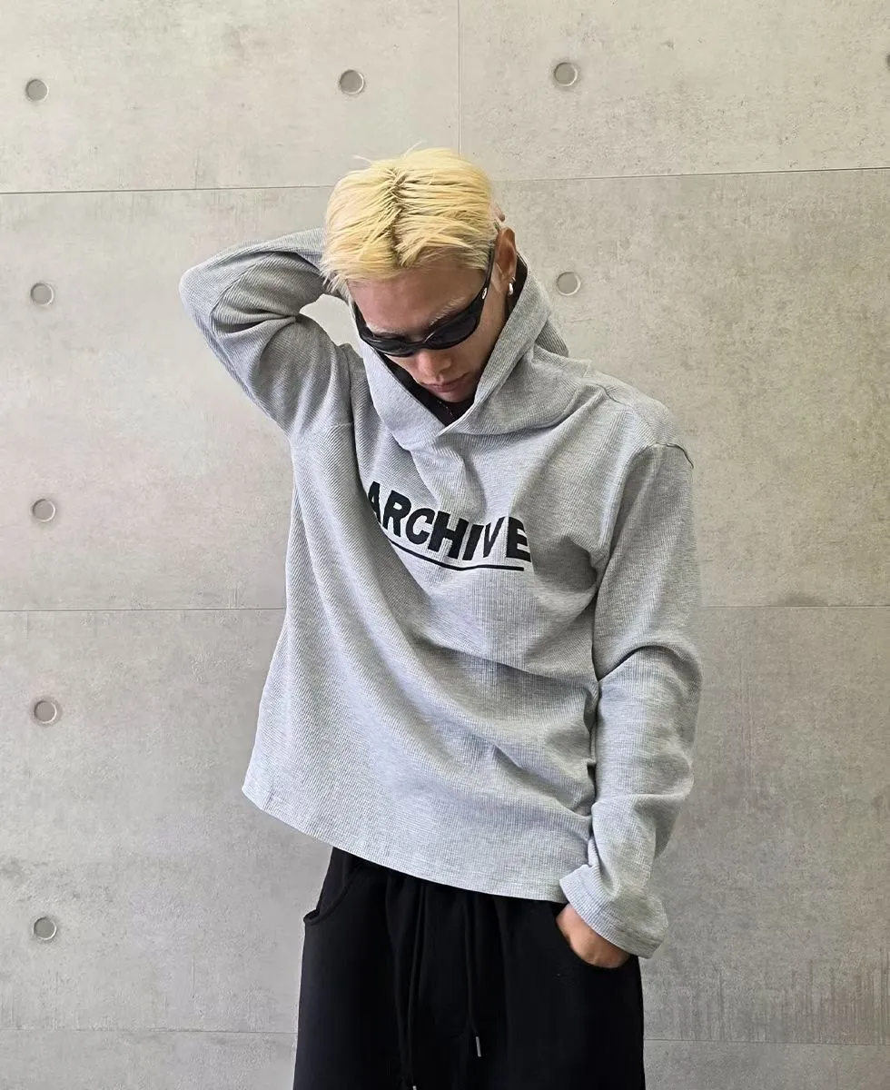 韓版連帽長袖華夫格簡約字母印花潮流帽T