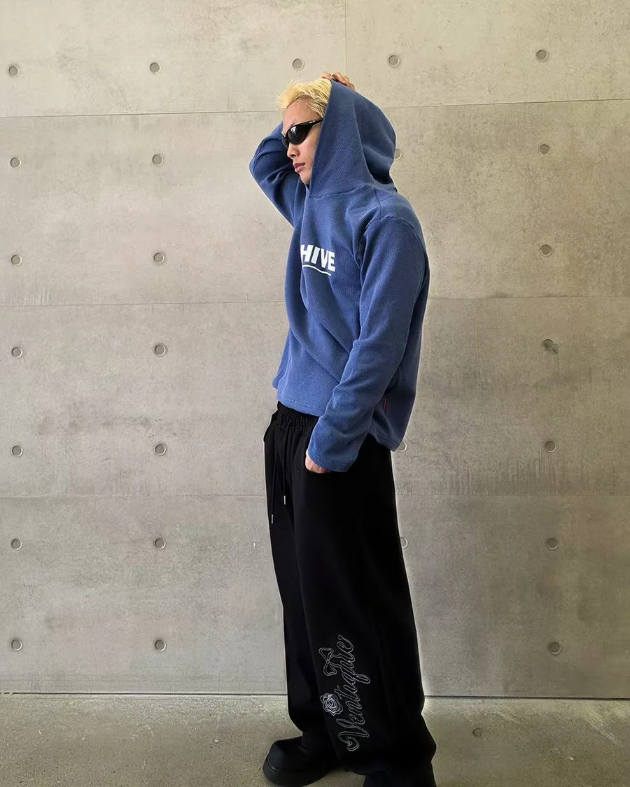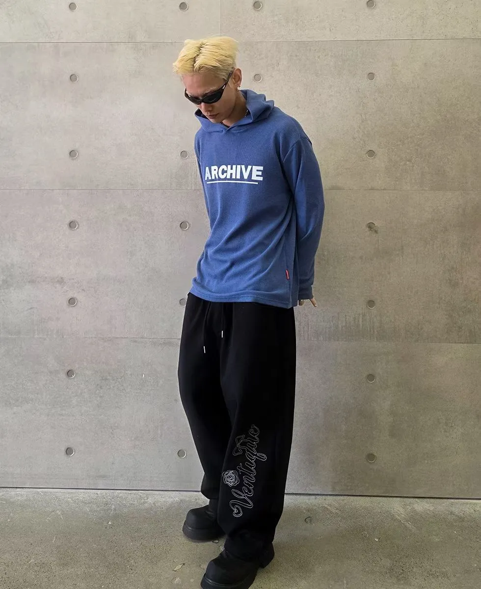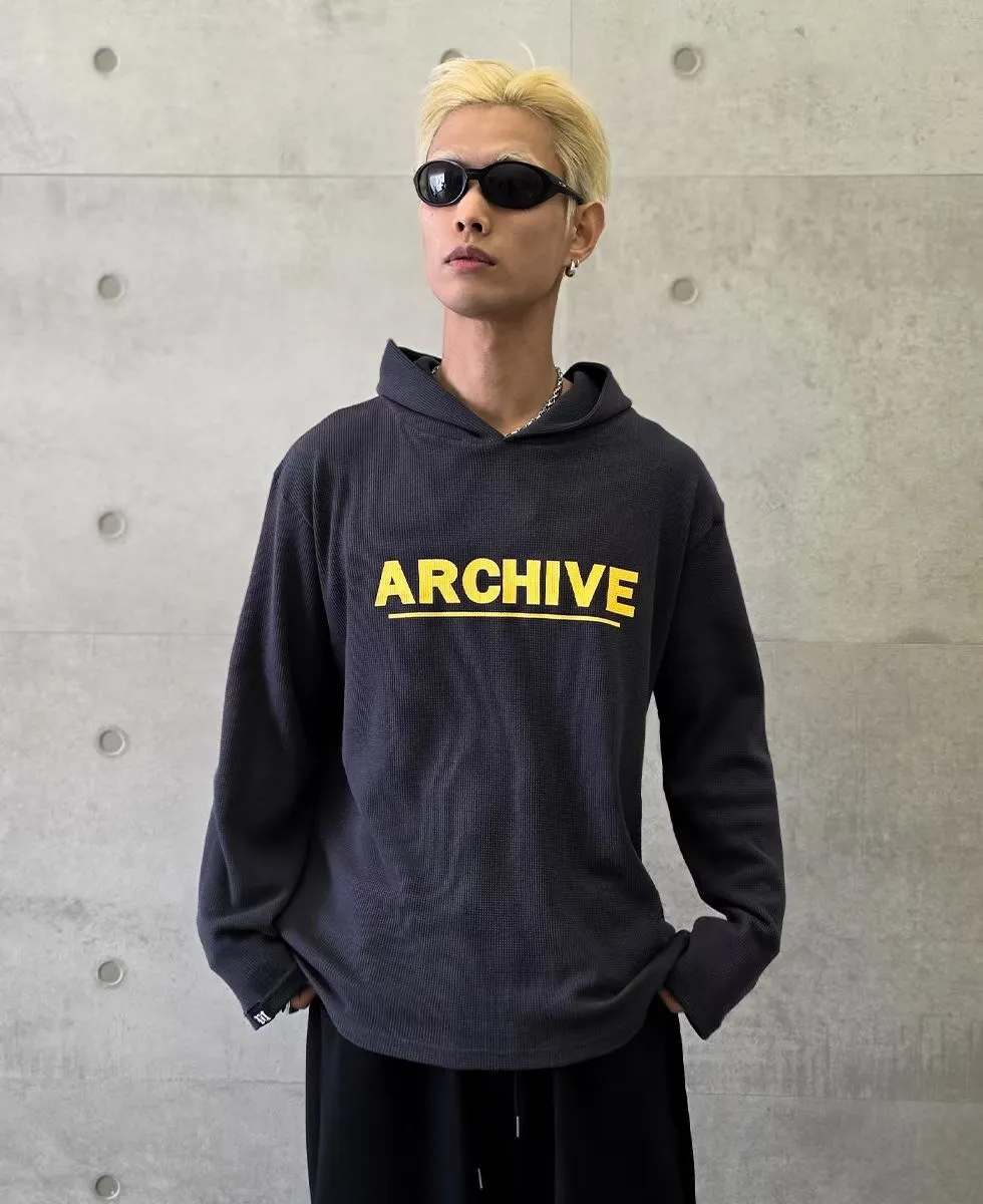 韓版連帽長袖華夫格簡約字母印花潮流帽T