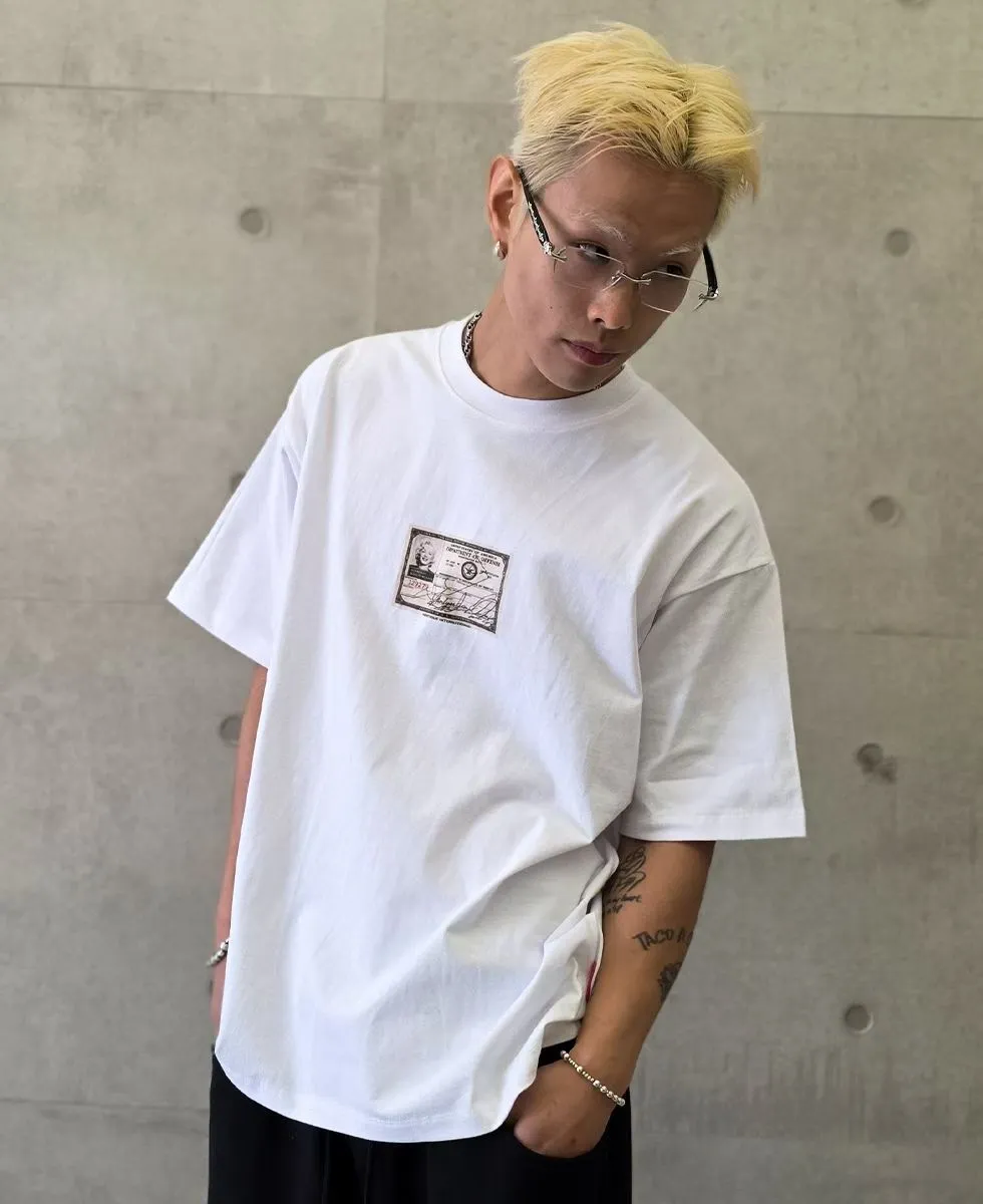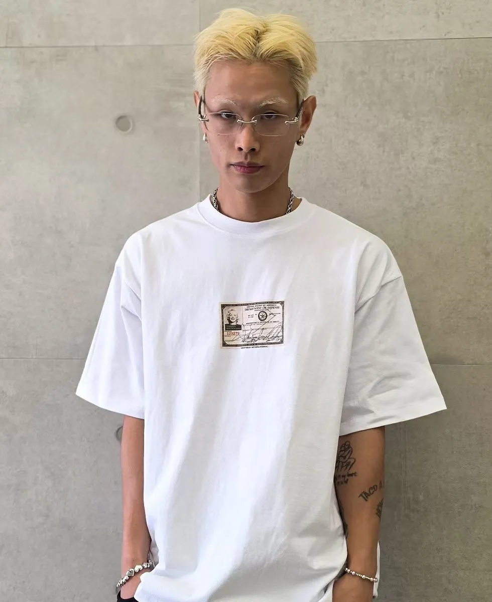 韓版潮流個性夢露標籤圖案白色短袖T恤
