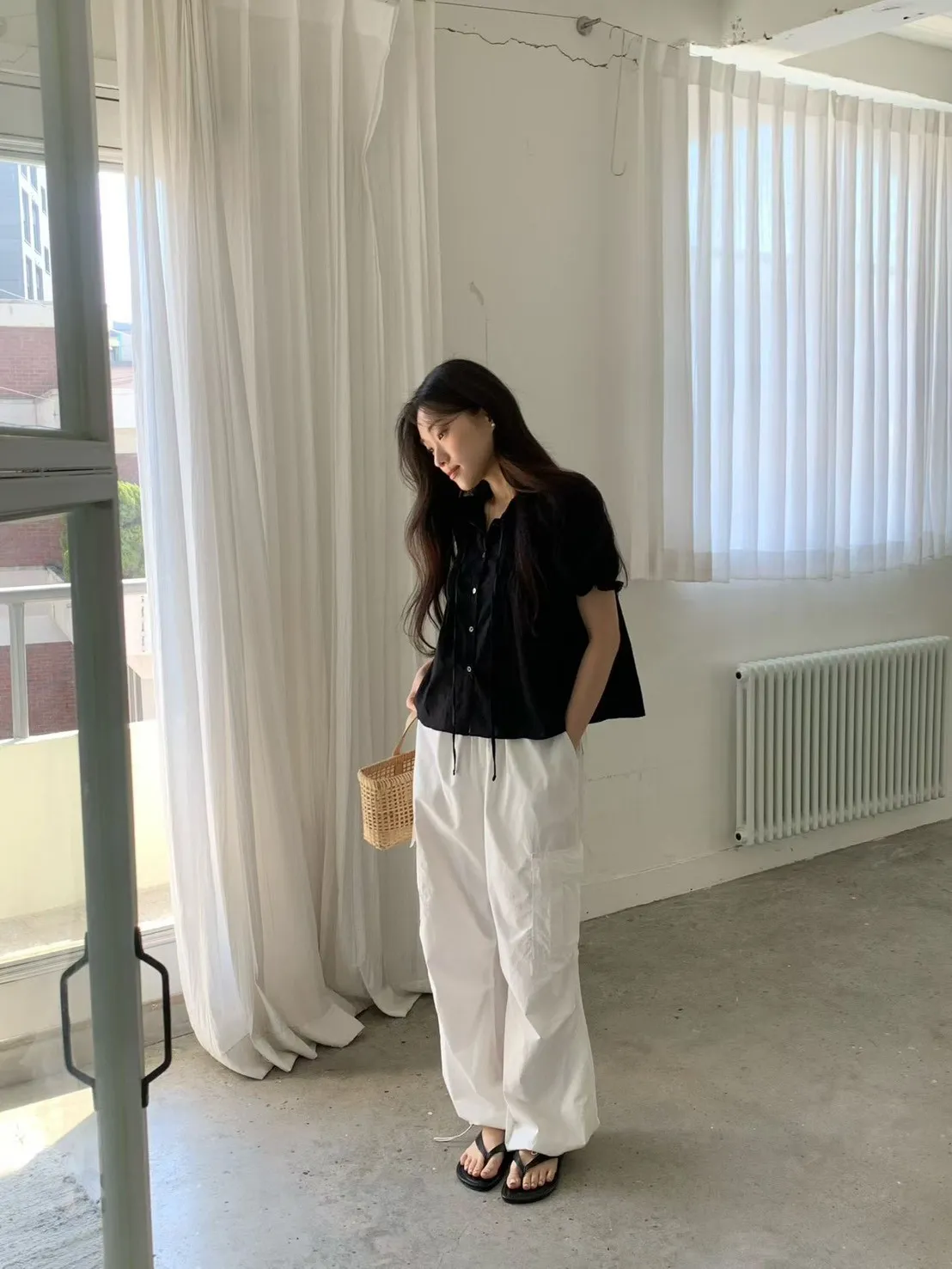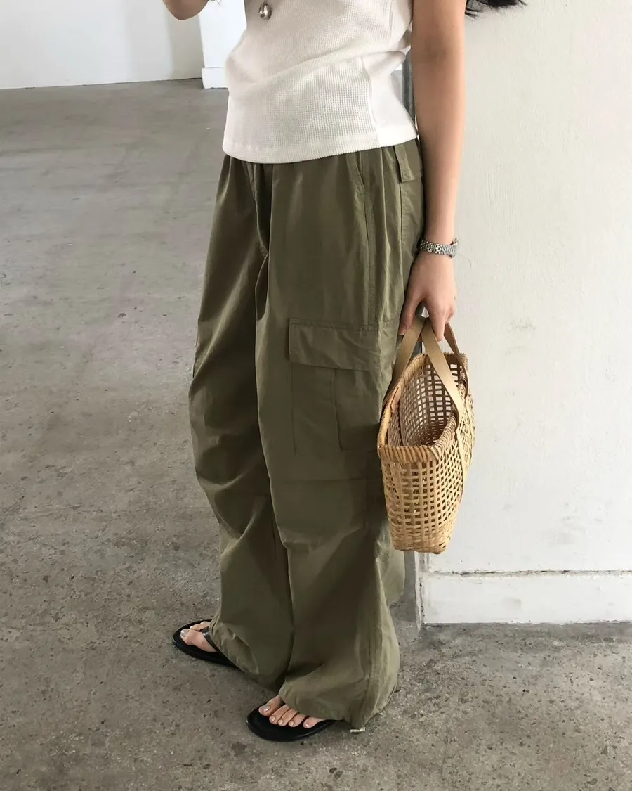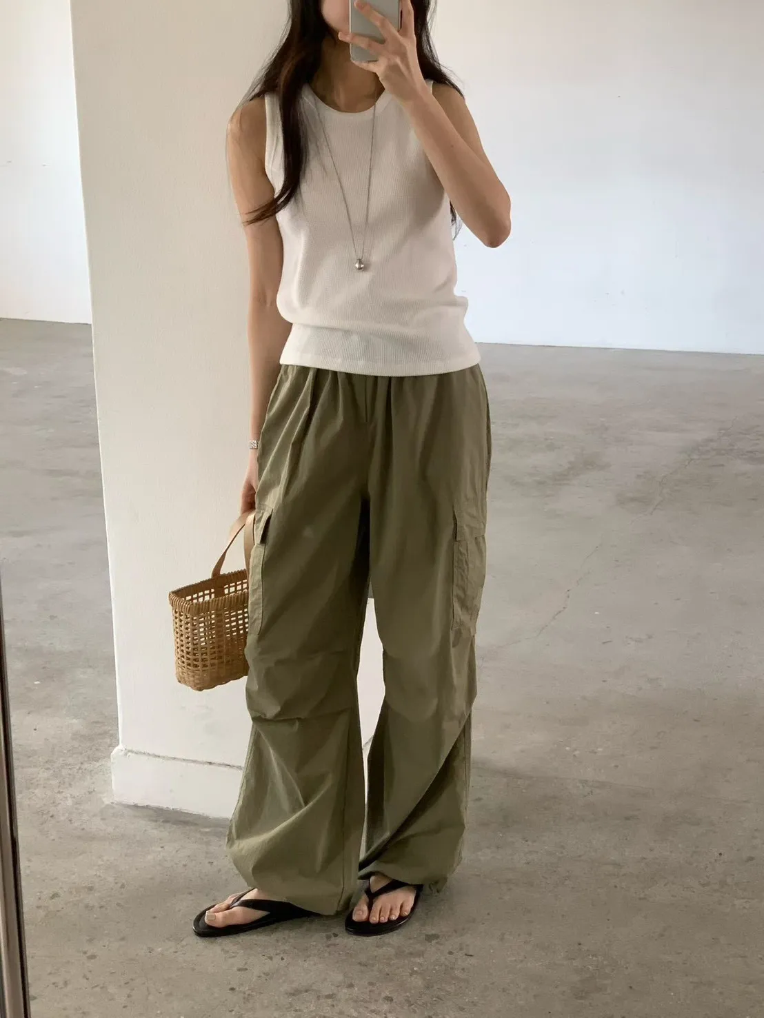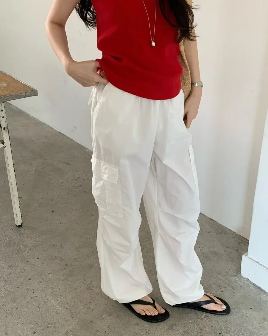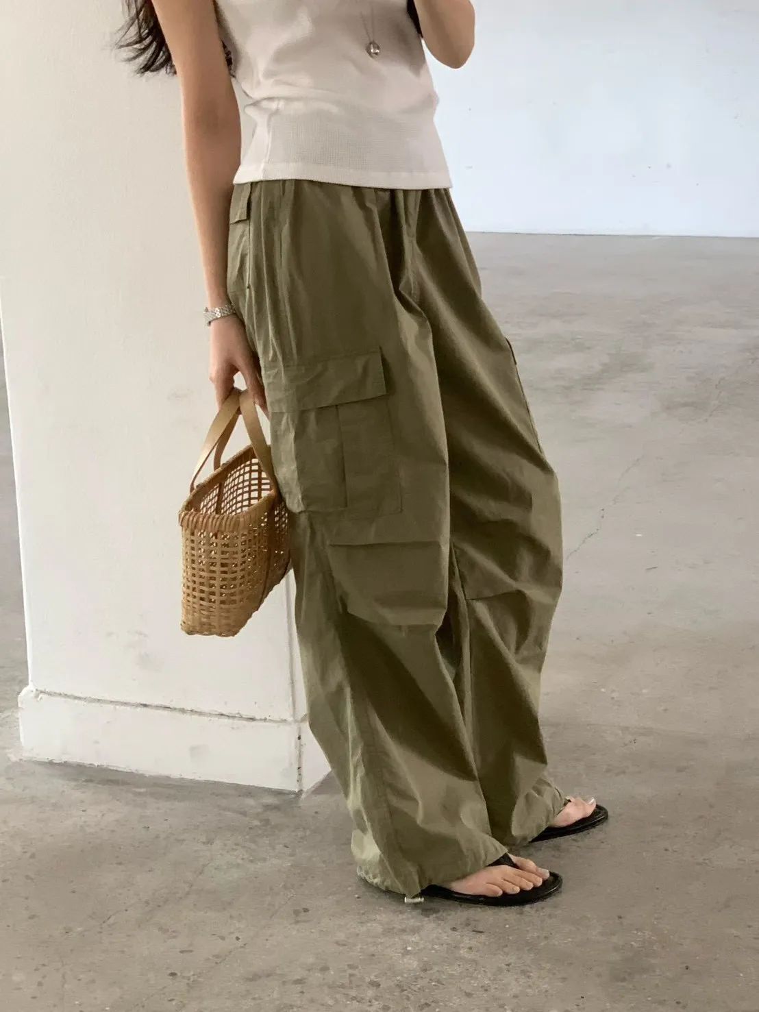 2026春季新款鬆緊寬鬆純色工裝休閒褲