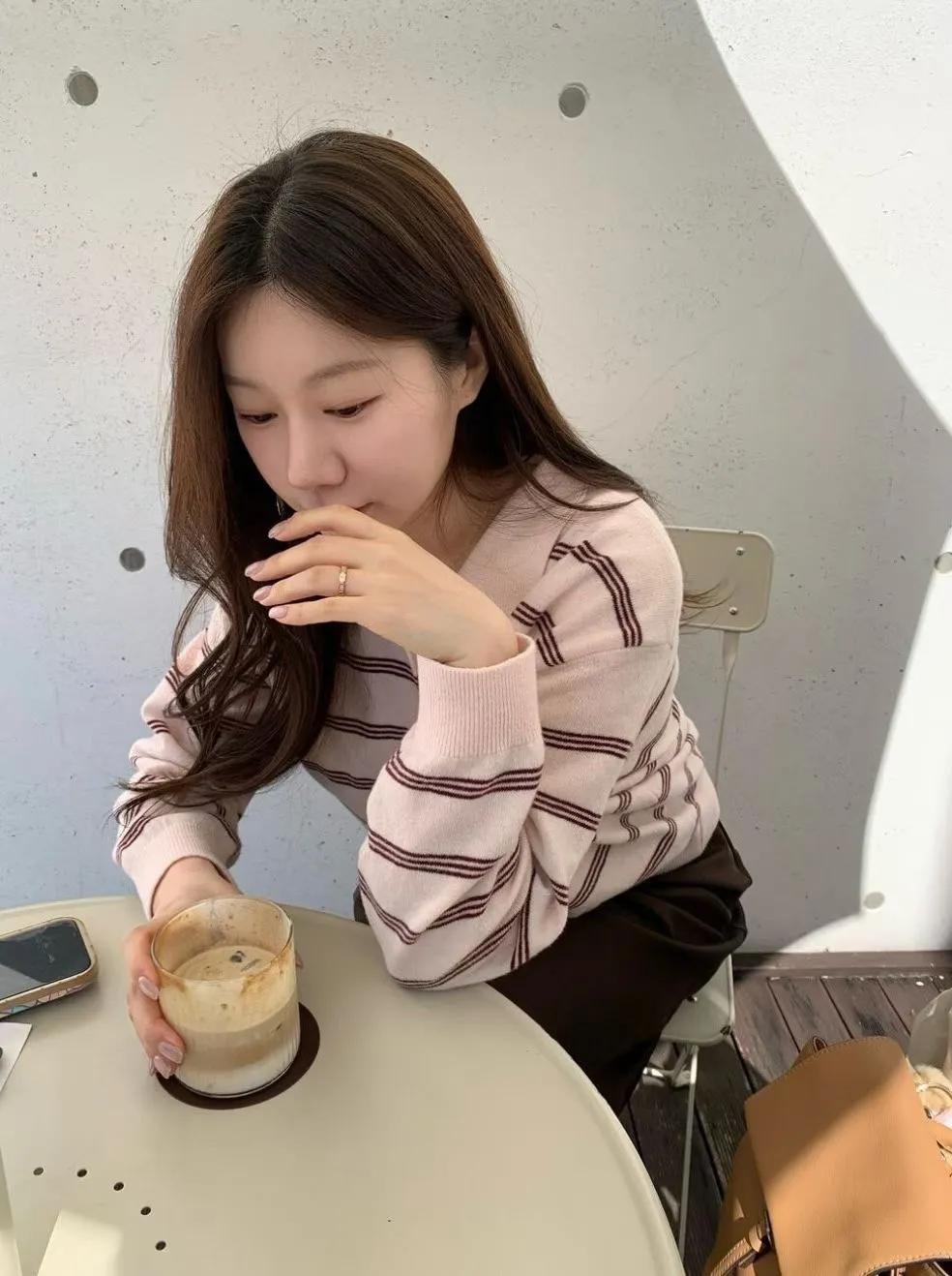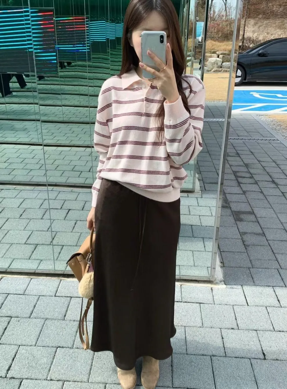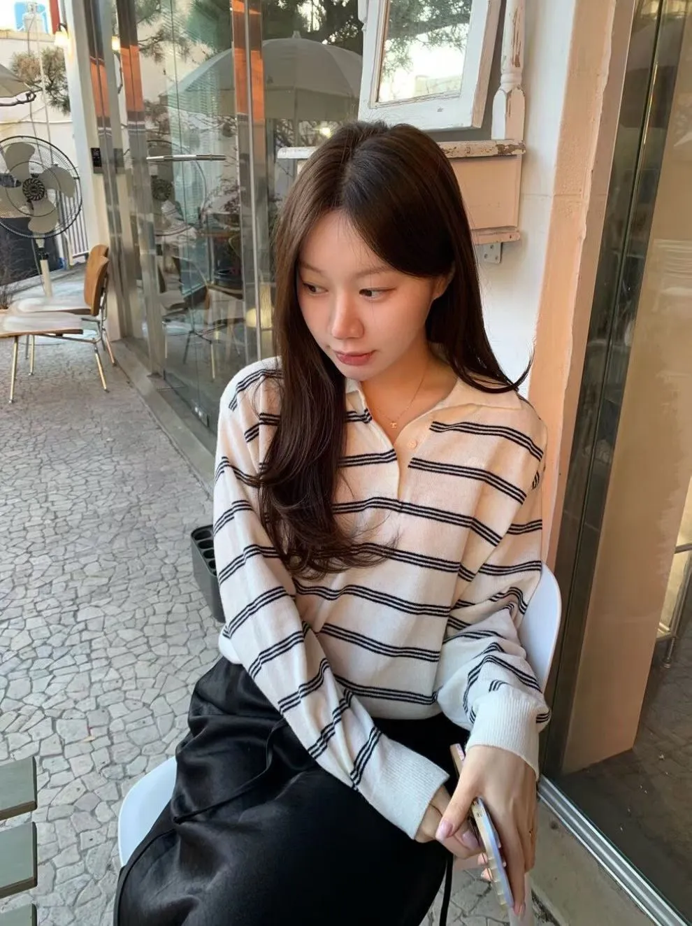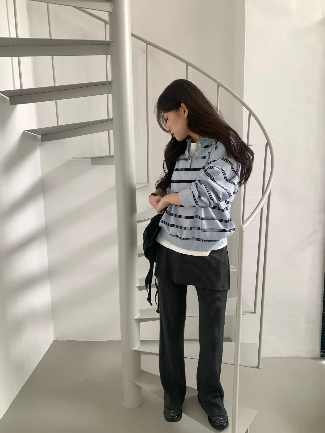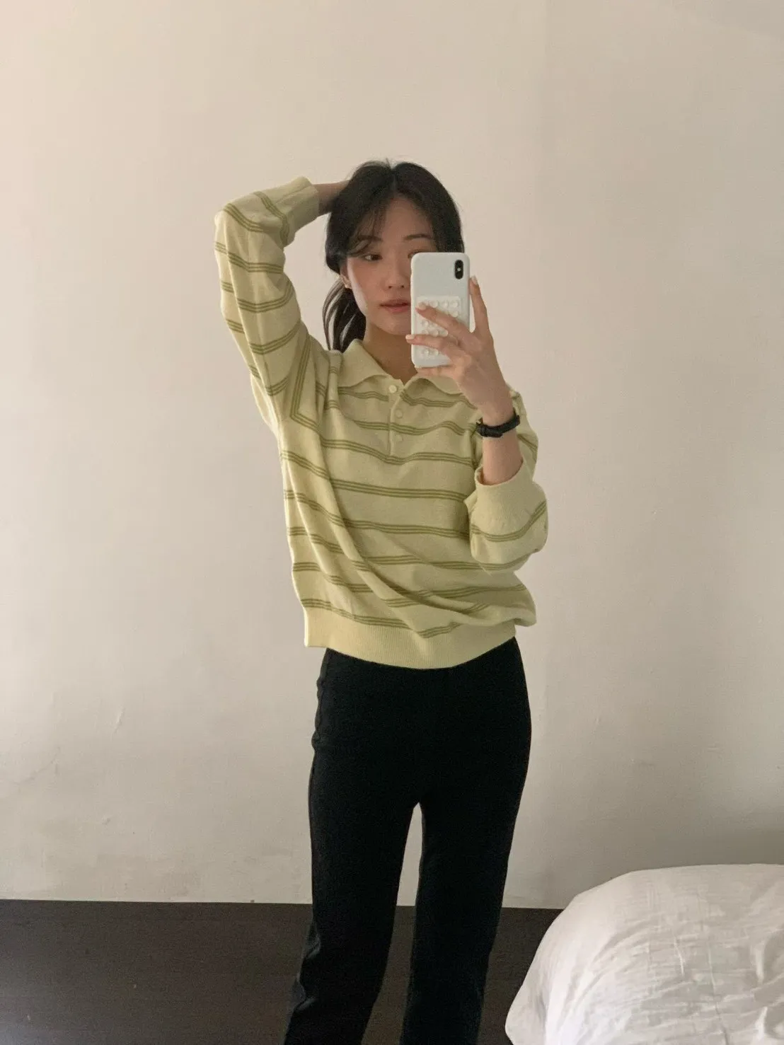 2026春季百搭翻領半系扣條紋針織衫