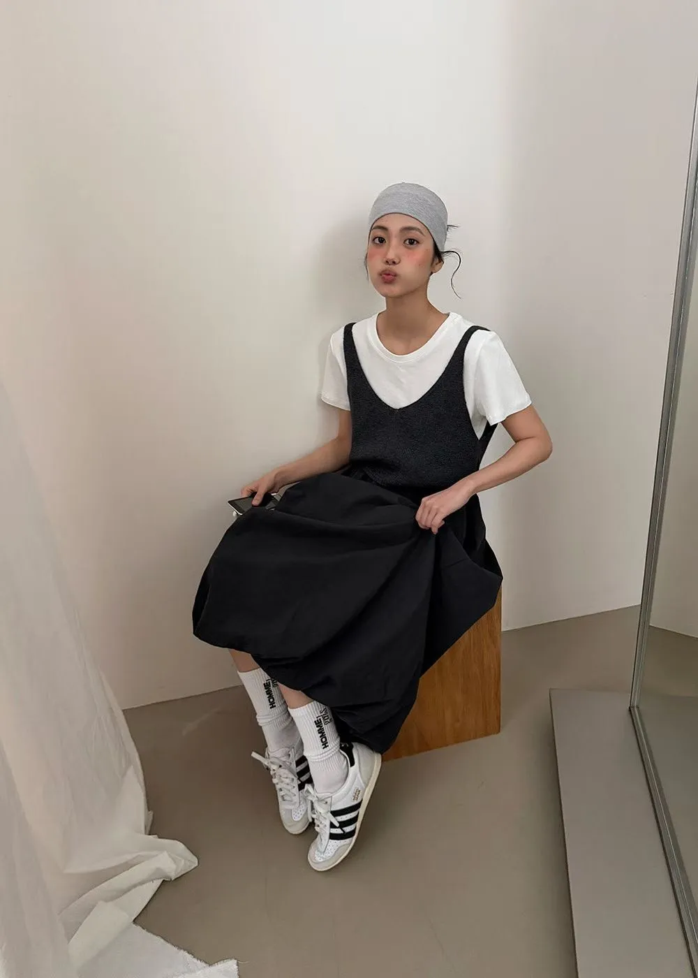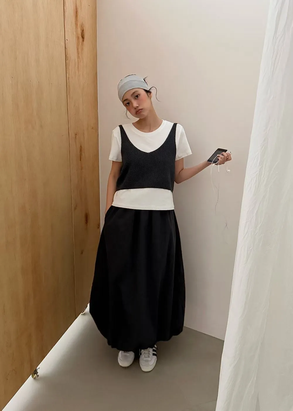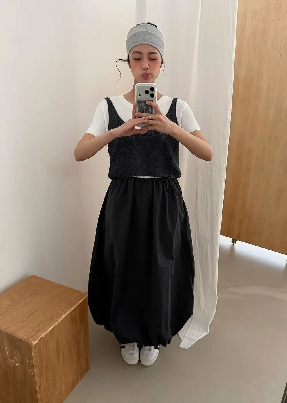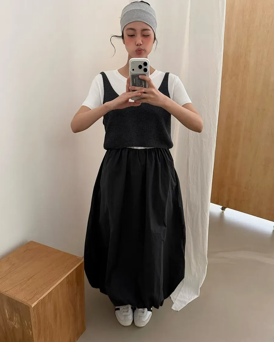 韓版鬆緊摺皺蓬蓬花苞裙